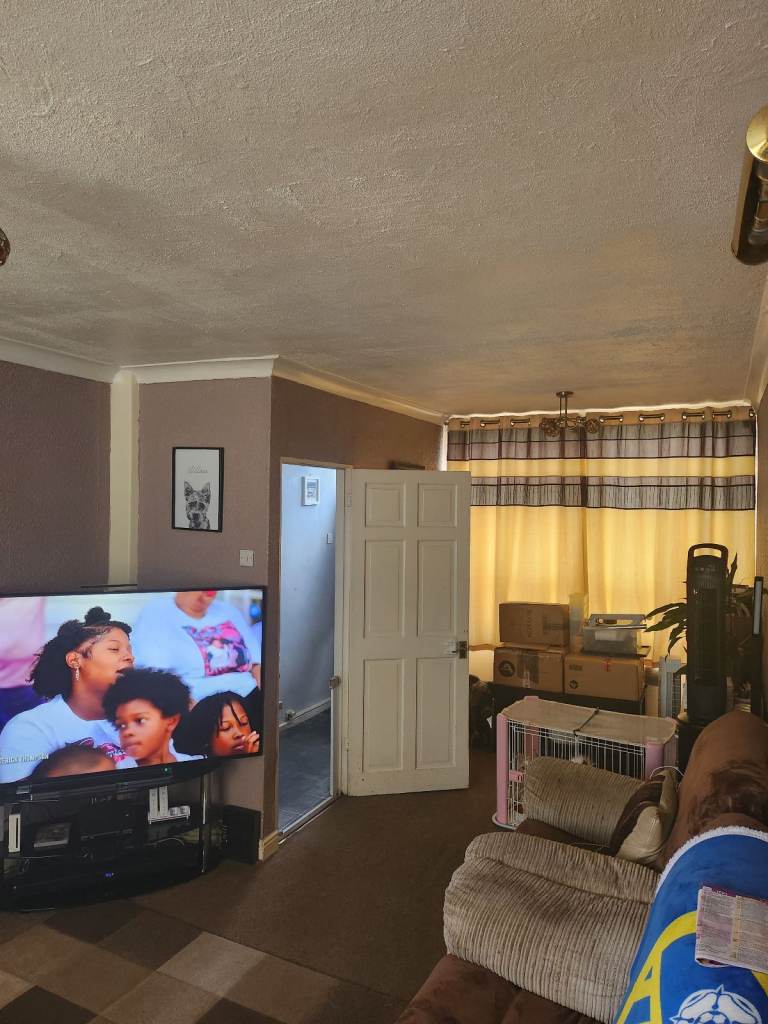 Needs decorating to your taste been here 36 years can get 3 cars in front drive we have put our own porch on front in a village would be great for us we just want a two bedroom with very secure back garden drive that 3 cars fit we have solar panels and central heating just want swap council to council we want a 2 were in a 3 seaview would be great but even been in it be nice 👍