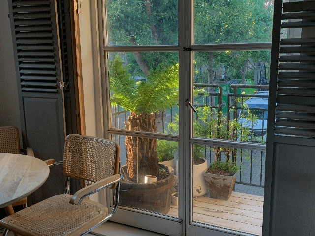 Wood floors, generous proportions (approx. 520 sq ft), good sized bathroom with bathtub, separate kitchen and a private balcony overlooking quiet treelined square. Access to a well-kept communal garden which is rarely used.