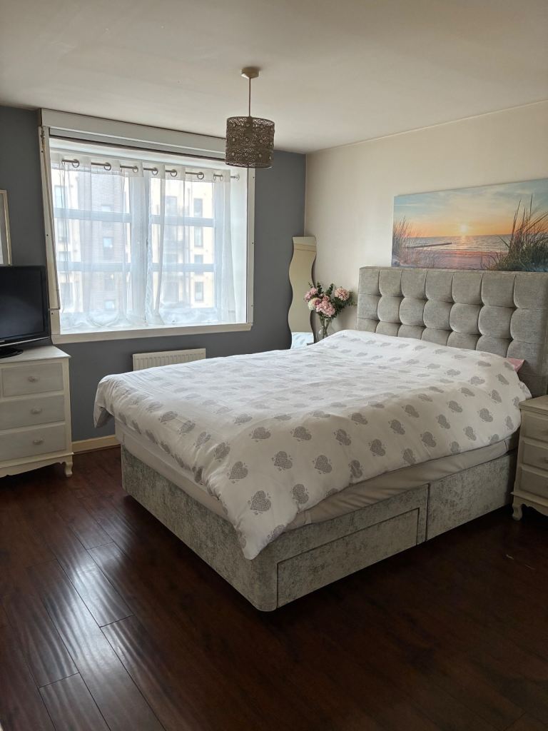 Bright and spacious 2 bedroom flat with lift.3rd floor. New boiler, open plan kitchen living room with space for dining table, large storage cupboards in hall and fitted wardrobes in bedrooms, bathroom with shower over bath. Very quiet stair with nice neighbors. Close to all amenities including tram stop and bus stops, shops pubs and restaurants, by the shore area.