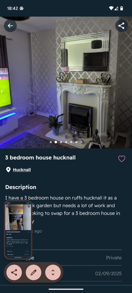 I have a 3 bedroom house on ruffs in hucknall it as a massive back garden but needs a lot of work ,I'm looking for a 3 bed house in hucknall with a small back garden