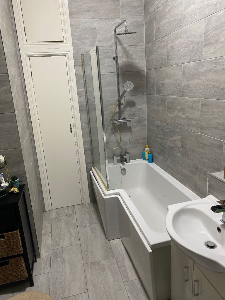 The bathroom has been fully renovated with floor to ceiling grey tiles, underfloor heating and shower. There is also 3 walk in cupboards and two high cupboards for storage. I also installed wooden floors throughout.