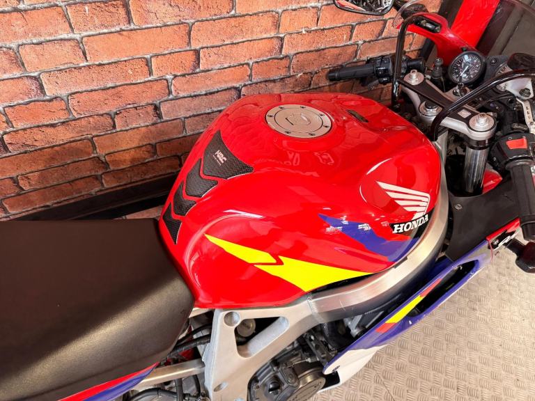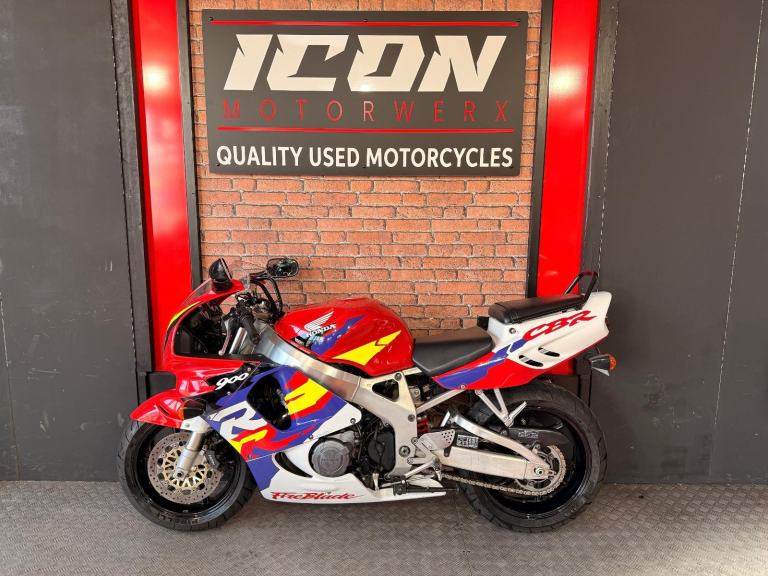 Here we have a fantastic example of the iconic Honda CBR900RR, arguably the best colour, this is a 2 previous owner bike and covered a mere 10012 miles, the bike is mostly standard apart from the aftermarket exhaust (comes with original), the bike has two keys, some service history, and will come with a fresh service and mot from us, thease bikes are becoming hard to find in this condition and mileage, come and take a look this bike won’t be around long, have this bike delivered to your door, full walk round video available on request.
