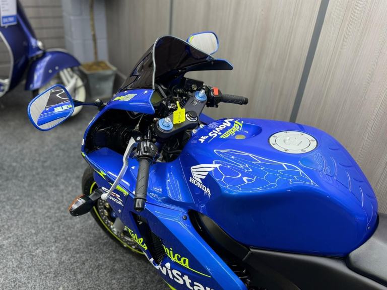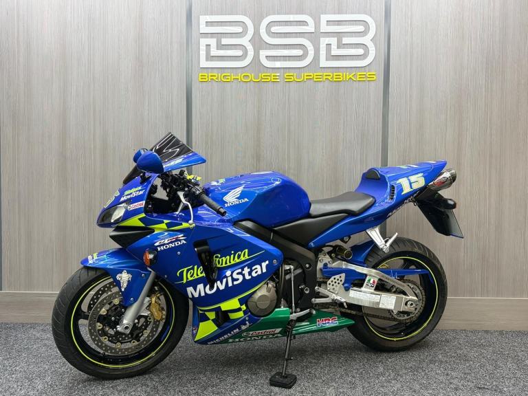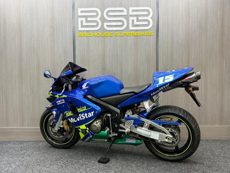 2003 53 HONDA CBR600rr RR3 finished in the Movistar 'Sete Gibenau' Moto GP paint scheme professionally painted when the bike was new by Dream machine. This is a single owner bike that features the Scorpion underseat exhaust with just 8059 miles on the clock. This is a very clean unabused bike. Comes complete with original owners manuals, excellent service history (14 stamps) & Spare key, 12 Months MOT, and freshly serviced & 3 Months Nationwide Warranty, FOR FURTHER DETAILS PLEASE CALL BRIGHOUSE SUPERBIKES ON 01484 973625 or [Phone number removed]- ALL OF OUR VEHICLES ARE HPI & MILEAGE CHECKED - FULL WALK AROUND VIDEOS AVAILABLE ON REQUEST - LOW RATE FINANCE ARRANGED - PX WELCOME - NATIONWIDE DELIVERY, Blue, £4,990