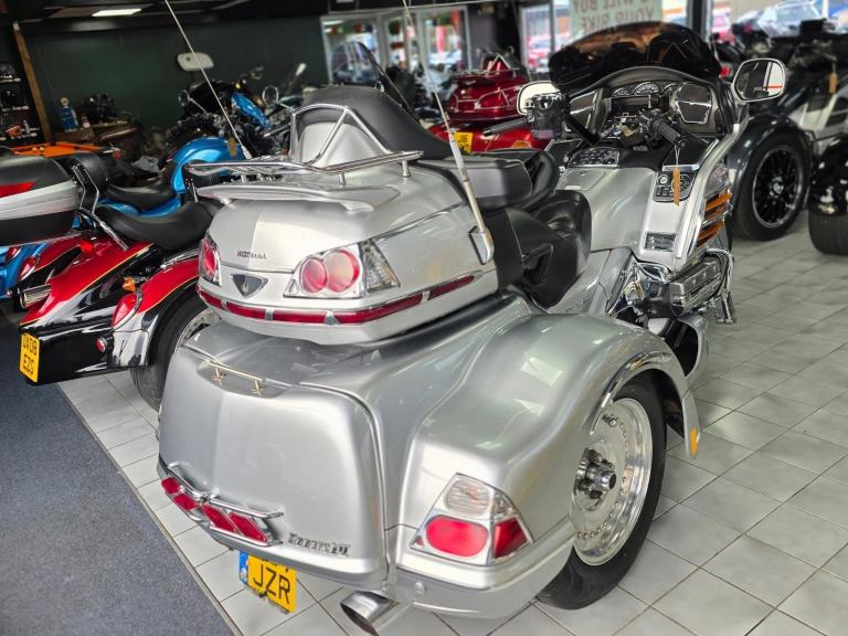 2007 Honda GL1800 Goldwing Lehman Trike in Silver Metallic with 40,000 Mile's. Sold as Seen means exactly that. Bought without warranty, as is. We currently are overstocked with Bikes & Trikes with more on way & dont have time to prep. Needs a cosmetic "cuddle" but in all fairness is in good order. We can spend 2 weeks preparing these & dont have this time at moment so grab a bargain of what is a Top Notch Trike Conversion a Lehman Monarch Trike for £16,995