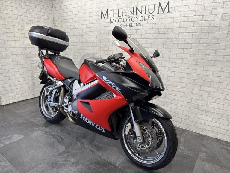 2007 HONDA VFR 800 with 45275 MILES. The excellent VFR 800, this one comes fitted with Delkevic cans, top box and heated grips whilst also being finished in a custom wrap. Runs superbly well as you would expect from any Honda and has been well maintained. Choose Millennium Motorcycles for your next bike. Buy with confidence from the North West’s leading Multi-franchise dealership. Your new bike will be inspected by one of our trained technicians. Part Exchange Welcome, Finance available and Nationwide delivery. WhatsApp on [Phone number removed]or call 01744 616161. Reserve or buy online at [Website URL removed] Come pay us a visit with our amazing clothing and accessories department and on site café.