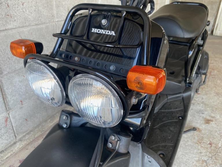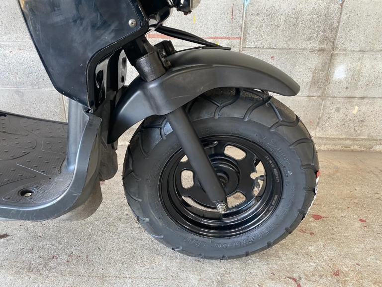 A very tidy fuel injected Honda Zoomer 50. Great fun and looks cool with the naket frame and wide stepboard.