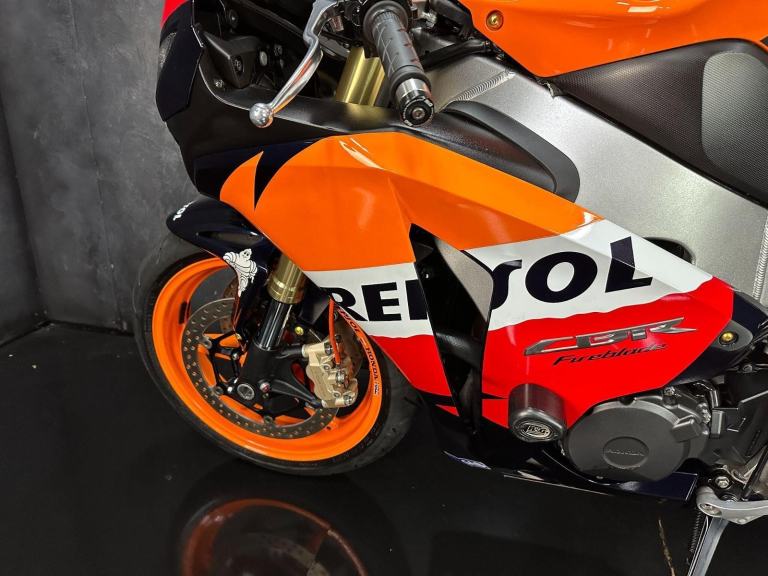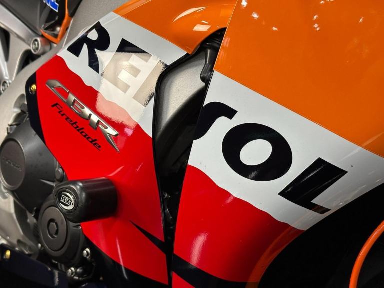 This is a gorgeous bike in outstanding condition for its year, and comes in the forever popular Repsol Racing colours. The Fireblade is one of the most rewarding and fun road bikes you can buy, offering a super smooth engine and razor sharp handling. This particular bike comes with a Leo Vince exhaust, a quickshifter for clutchless gear changes, rear seat cowl, tail tidy, braided brake lines, frame protection, carbon chain guard, carbon heel plates, and a radiator guard. It will be leaving us with a fresh service and MOT so it's ready to be enjoyed., 2 owners, , For a personal walk-round high resolution video please give us a call.