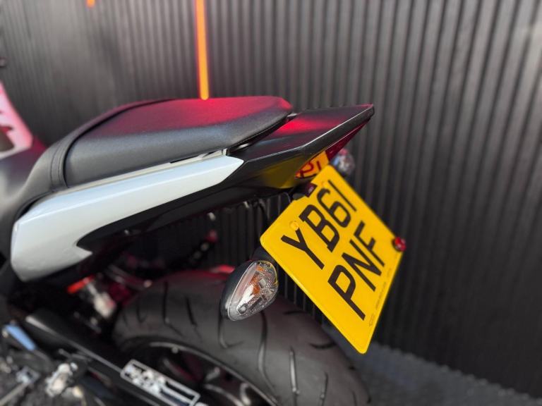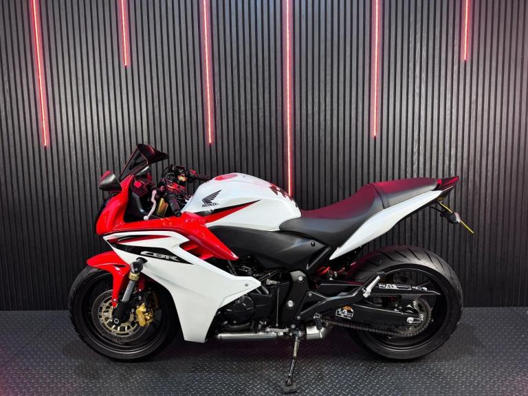 White, 24/7 ONLINE PURCHASE AVAILABLE - This 2012 Honda CBR600F is the ultimate ''real-world'' sports bike, finished in a sharp and sophisticated Pearl Cool White. With a remarkably low 8,189 miles on the clock, this machine has been sparingly used and remains in very good condition, reflecting the careful ownership it has received over the years. It is backed by service history paperwork up to 5,000 miles and has been professionally prepared for its next owner with a comprehensive general inspection, a new oil filter, and a fresh oil change. Coming complete with two original keys, this CBR600F offers a fantastic balance of high-performance thrills and everyday usability. The CBR600F is powered by a refined version of the legendary 599cc inline-four engine derived from the CBR600RR supersport. While it shares that high-revving DNA, Honda tuned this model to provide a much broader and more accessible powerband, producing a healthy 102hp. This makes the bike incredibly smooth and tractable at low speeds around town, while still offering a thrilling rush of acceleration on the open road. It is a mechanical masterpiece known for its ''bulletproof'' reliability and silky-smooth gear shifts, making it a favorite for both commuters and weekend enthusiasts. Unlike the more aggressive ''RR'' race replicas, the CBR600F features more relaxed ergonomics, including slightly higher clip-on handlebars and a more cushioned, one-piece seat. This allows for a sporty look without the wrist strain, making it much better suited for longer journeys or daily riding.***Rest assured, your new bike includes a 3-month warranty (extension options available) and is guaranteed to have at least 6 months remaining on the MOT. Making your purchase simple: Explore our flexible finance plans and benefit from our affordable nationwide delivery service. Important Note on Viewing: Stock moves quickly! If you are planning to view a particular model, we kindly ask that you call us first to confirm its availability and avoid any disappointment***, 2 owners, 2 keys, ABS, Belly Pan, Electric start, Rear Hugger, Stainless Exhaust, Tank Pad, Tinted Screen, Please visit our website to buy online, apply for finance or find out about our delivery prices.
