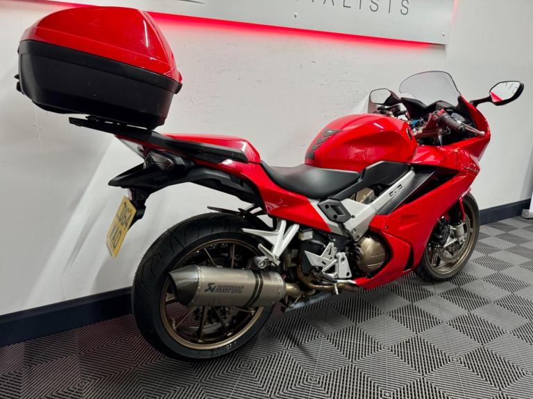 Red, The Honda VFR800F delivers smooth, balanced performance with signature V4 character and refined sports-touring versatility. Comfortable, composed, and deceptively quick in the corners, it?s a proper all-rounder that feels just as sharp today as ever ? and still knows how to make a rider grin.This example features Akrapovic Exhaust, top box, ABS, centre stand, two keys, lots of paperwork, owners manual and service book with a full history comprising of 6 stamps.|| At Superbike Specialists, we offer a top selection of HPI-clear used motorcycles (unless stated). Our bikes are mechanically prepared by passionate onsite mechanics, with a focus on exceptional customer service. Every bike includes a 30-day warranty, with options to extend to 6 or 12 months, a minimum of 6 months MOT, and a fresh service. UK mainland delivery starts at £50. Competitive finance and card payments are accepted. We are also an authorised Scorpion Datatool dealer, offering fully fitted S5 Thatcham-approved trackers from £299. ||, 3 owners,