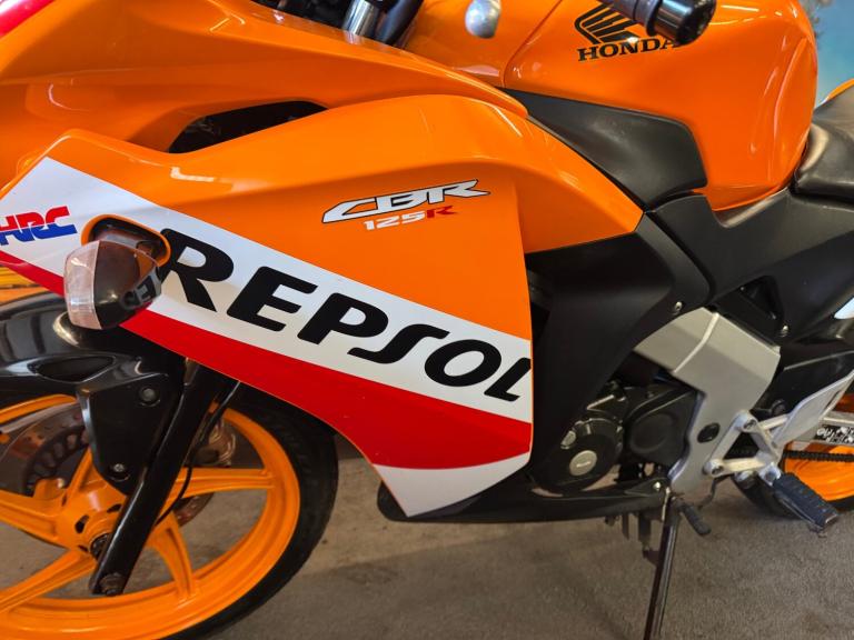 2015 HONDA CBR125R IN REPSOL COLOURS 23000 MILES SOME CORROSION AND CRACK IN FAIRING MOT JUNE RUNS WELL TAKEN IN PX TO CLEAR NO WARRANTY OR GUARANTEE SOLD AS SEEN