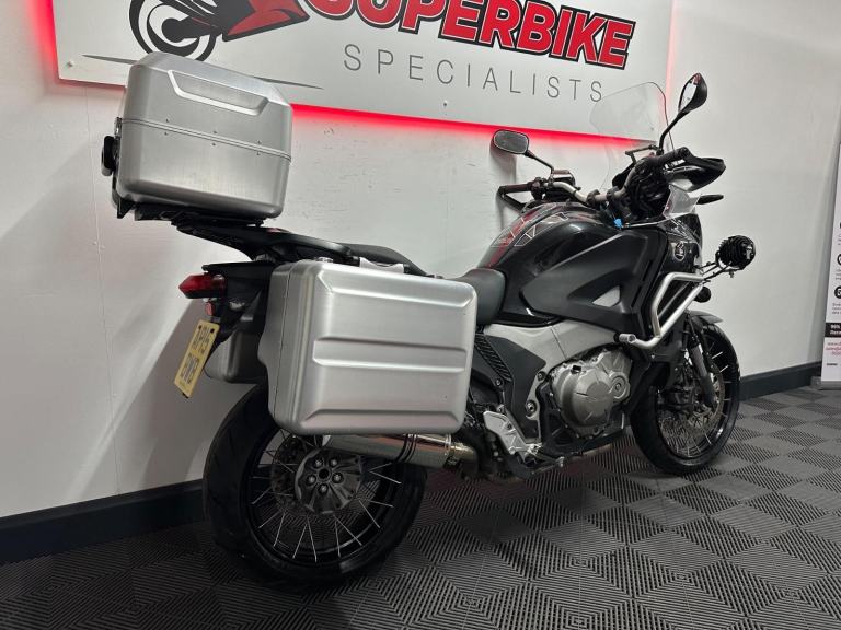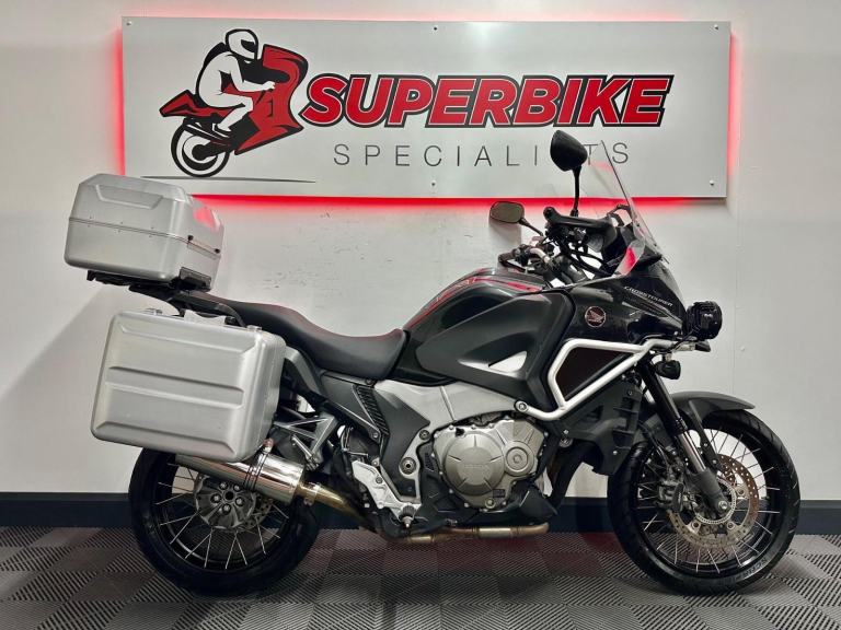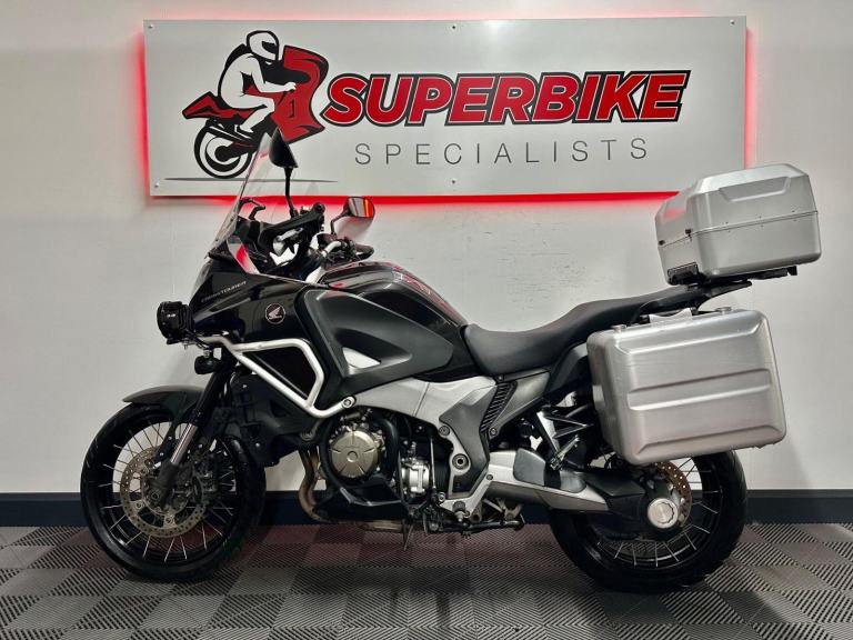 Black, The Honda VFR1200X Crosstourer is an adventure-touring motorcycle featuring a powerful V4 engine with a focus on strong low-to-mid-range torque, advanced Torque Control system for stability, while the bike's rugged chassis, spoked wheels, and adjustable suspension are designed to handle diverse road surfaces and long journeys in comfort. Great example that has clearly been maintained with 5 service stamps and self maintenance receipts, all keys, panniers, Delkevic exhaust and Front fogs/ heated grips.|| At Superbike Specialists, we offer a top selection of HPI-clear used motorcycles (unless stated). Our bikes are mechanically prepared by passionate onsite mechanics, with a focus on exceptional customer service. Every bike includes a 30-day warranty, with options to extend to 6 & 12 months from £150., 3 owners,