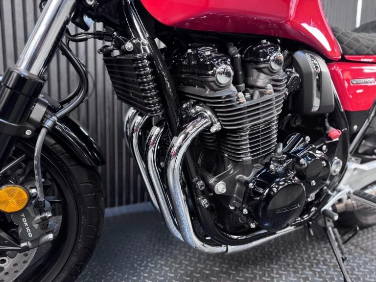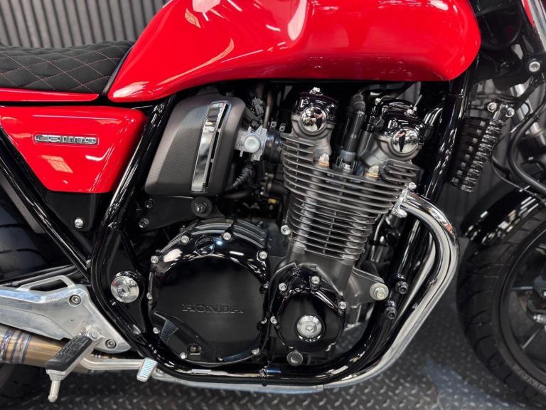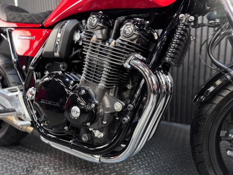 Black, 24/7 ONLINE PURCHASE AVAILABLE - This 2020 Honda CB1100 EX is a modern masterpiece of nostalgia, finished in the deep and lustrous Candy Chromosphere Red and Graphite Black. With an incredibly low 1,593 miles on the clock, this machine is in really good condition and has been barely run in. It is backed by a solid maintenance history, having had its first service completed at 592 miles, and has now been professionally prepared for its next owner with a general inspection, a new oil filter, and a fresh oil change. Fully Euro 4 compliant and coming with two original keys, this is a rare opportunity to own one of the last great air-cooled inline-fours. The CB1100 EX is a tribute to the legendary CB750 that started the ''Universal Japanese Motorcycle'' revolution. It is powered by a magnificent 1140cc air-and-oil-cooled inline-four engine. While most modern bikes have moved to liquid cooling, Honda specifically engineered this engine with thin cooling fins to retain that classic mechanical aesthetic and the unique ''ticking'' sound as the engine cools down. It produces a smooth, effortless 88hp with a massive spread of torque, making it a joy to ride at a relaxed pace. The engine is paired with a six-speed transmission and an assist/slipper clutch, ensuring the lever pull is light and gear changes are silky smooth. The EX model is the more traditional, premium version of the CB1100, characterized by its stunning 18-inch chrome wire-spoke wheels, dual chrome silencers, and a larger fuel tank with a seamless finish (no visible flange welds).***Rest assured, your new bike includes a 3-month warranty (extension options available) and is guaranteed to have at least 6 months remaining on the MOT. Making your purchase simple: Explore our flexible finance plans and benefit from our affordable nationwide delivery service. Important Note on Viewing: Stock moves quickly! If you are planning to view a particular model, we kindly ask that you call us first to confirm its availability and avoid any disappointment***, 1 owners, 2 keys, ABS, Electric start, Rear Hugger, Seat Cowl, Stainless Exhaust, Please visit our website to buy online, apply for finance or find out about our delivery prices.