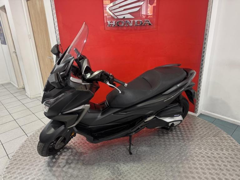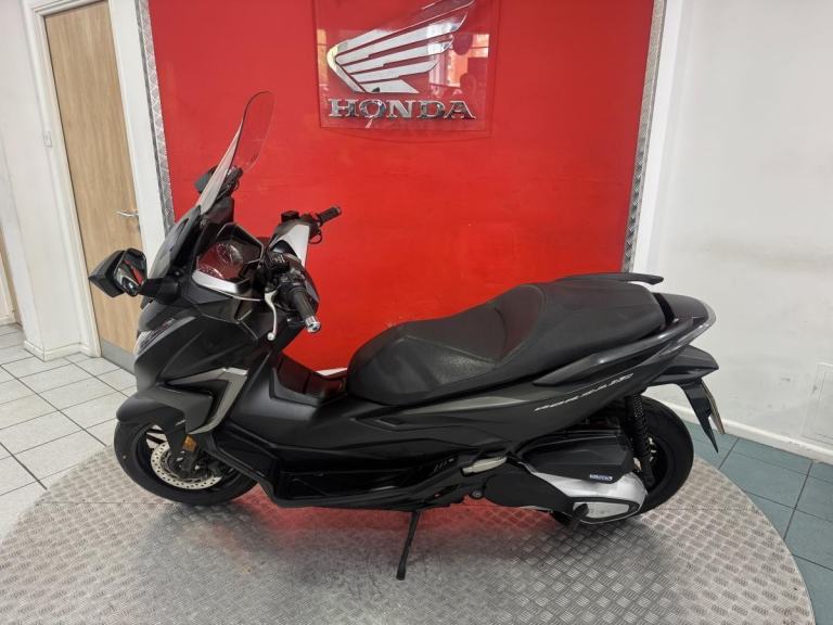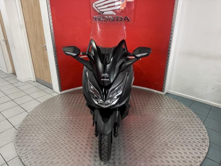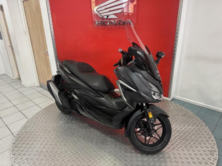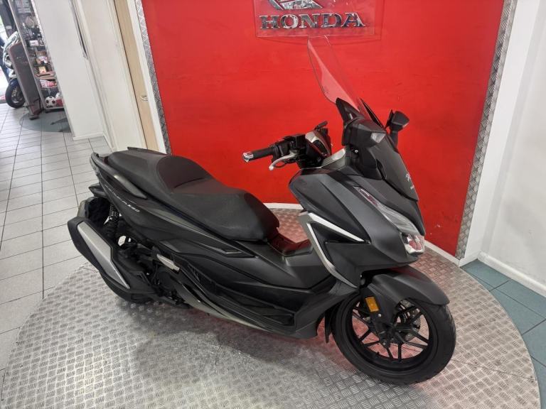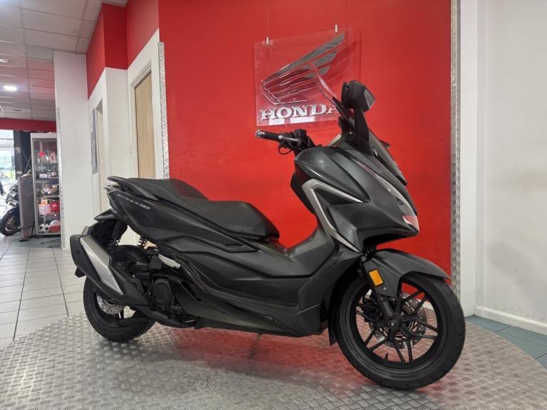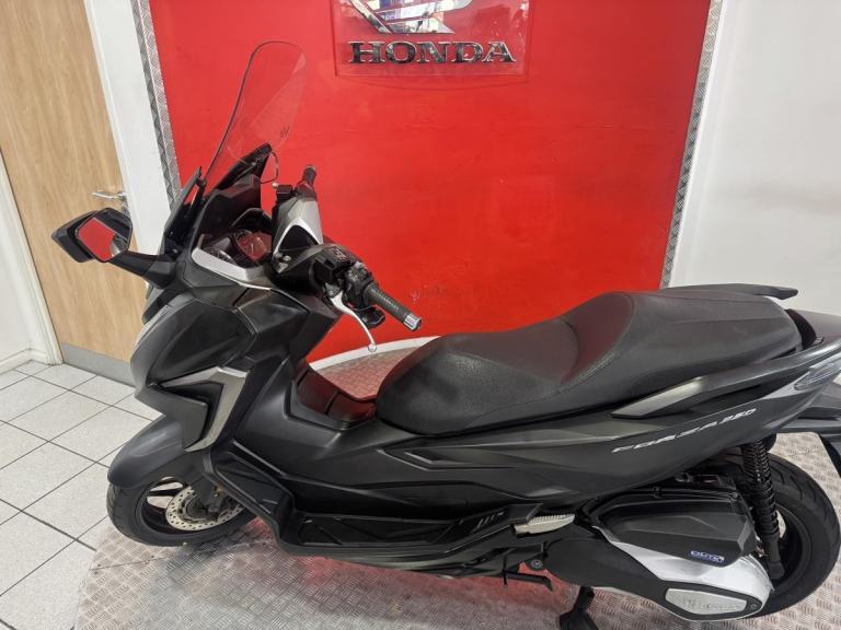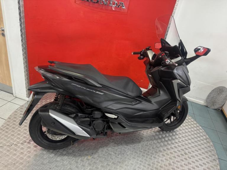 The Forza 350 is a premium maxi-scooter that blends sleek urban style with effortless performance, making it perfect for both daily commuting and weekend escapes. Powered by Honda' smooth and responsive 330cc engine, the 2022 Forza delivers strong acceleration, excellent fuel economy and refined comfort on every ride. Its modern design features a smart electric screen, full LED lighting and generous under-seat storage large enough for two helmets, while the relaxed riding position and advanced traction control make longer journeys just as enjoyable as city trips. Stylish, practical and incredibly easy to ride, this Forza offers the ideal mix of sophistication and convenience for riders who want a scooter that feels as good on the open road as it does weaving through town.