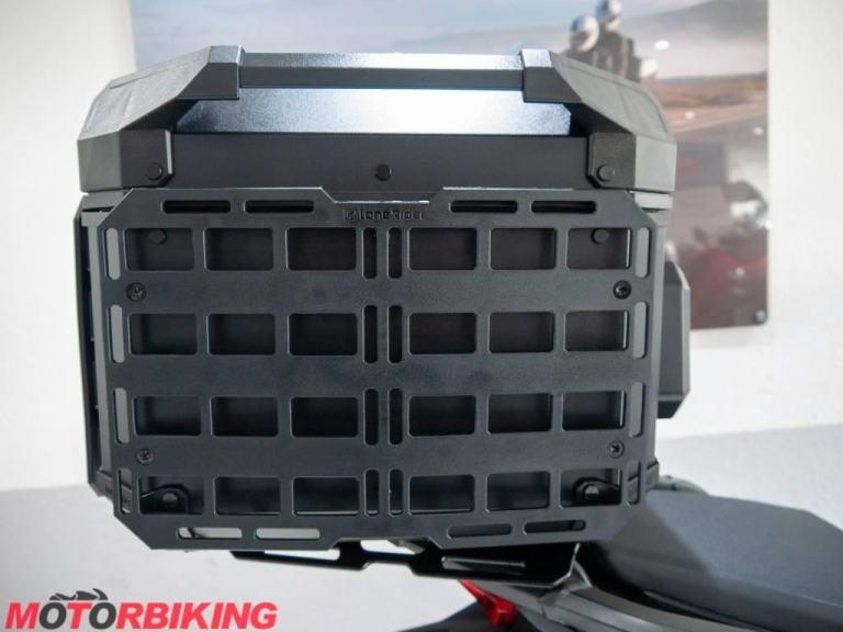 Very original throughout, the bike includes a pricey and very well engineered Lone Rider top case, plus a useful Quad Lock mount which have become a very popular accessory nowadays, particularly as these machines include Apple CarPlay and Android Auto connectivity.