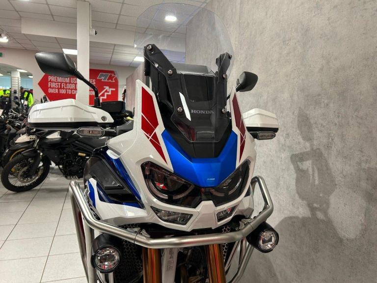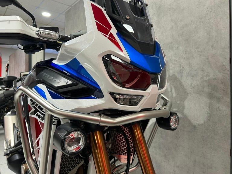 With 2 owners from new, this stunning tri-colour, highly capable adventure machine is in fantastic condition. Fitted with additional genuine Honda upper and lower engine bars, spotlights, main stand and stainless radiator guards, this machine also comes with heated grips, DCT transmission, electronically adjustable suspension, cruise control, switchable rider modes and more from factory. Serviced at 4076 miles by ourselves, this machine has recently been valeted in preparation of sale, with nationwide delivery available. If viewing on eBay, visit our website Miles Kingsport Motorcycles for more photos.