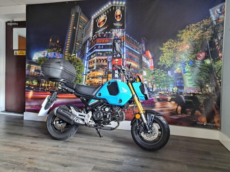2024 Honda MSX125 Grom. Finished in Candy Victory Blue. 1 Owner Bike with less than 5000 miles on the clock. Full Main Dealer History. All books and Keys present. Extras include Mobile phone holder with bracket and Large Givi Top Box. Some Minor flaking on the Engine (quite common) MOT until July 2026. Comes with 3 Months Warranty. Good Value and Ready to Go. £2995. Viewings by appointment only. Please Call for more details. Ask for Adam (photos to follow)