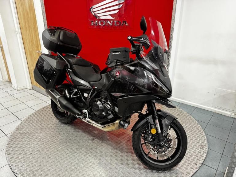 Effortlessly blending comfort, performance and everyday adventure, the Honda NT1100 is the ultimate UK-ready touring companion. Powered by a smooth, torque-rich 1084cc parallel-twin engine and paired with Honda' refined automatic transmission, it delivers relaxed yet responsive riding whether you're carving through country lanes or cruising the motorway. With upright ergonomics, excellent wind protection and advanced rider aids including ABS, traction control and selectable riding modes, the NT1100 makes long journeys feel effortless. Practical touches like integrated panniers, cruise control and a full-colour TFT display with smartphone connectivity elevate it into a true lifestyle machine perfect for riders who want premium comfort, modern tech and the freedom to go further, every day.