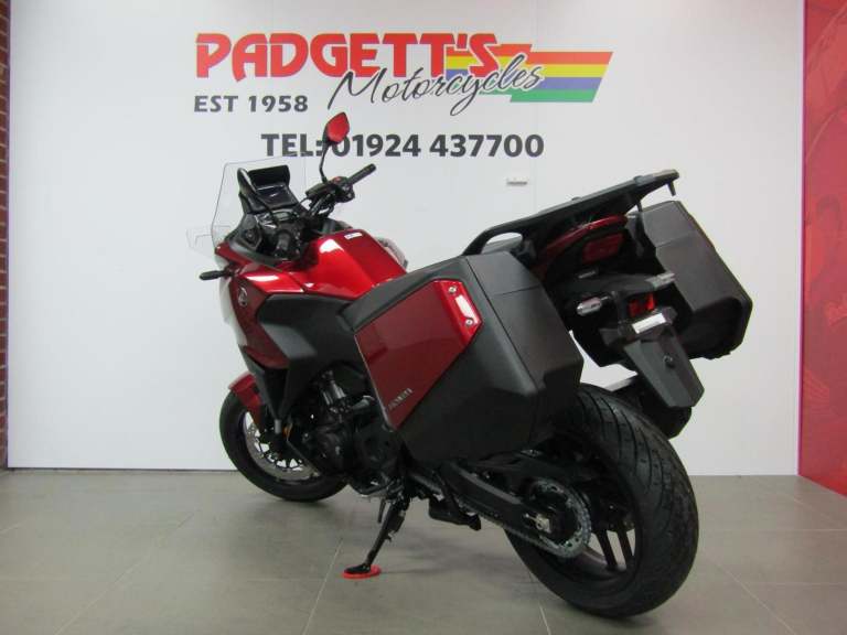 We present here for sale this NT1100 – DCT. Ready to travel? The new NT1100 offers everything you need in one motorcycle. It’s built agile for the demands of the city with light, easy handling and long-travel suspension. But it’s also a fantastic tourer, with powerful twin-cylinder engine, high equipment level and comfortable GT design for two. Add premium riding technology – and the option of six- speed Dual Clutch Transmission – and there’s only one thing left to consider. Just where, and how far, do you want to go? You’ve been waiting for this moment. The working week is done. Now it’s time to explore, a weekend away. Your NT1100 is packed, for two. Where are you going? You have an idea and part of the route is planned on your phone. But some will be a surprise, deliberately. And what are you searching for? Something special. The feeling only travel by motorcycle can bring. And it’s out there, waiting. That’s the great thing about the NT1100. It’s so versatile. Sleek aerodynamics, a large, 5-way adjustable screen and upper/lower deflectors provide superb wind protection. But compact dimensions are just right for urban riding. The seat, with an 820mm height, is comfortable for two and matched to a flexible riding position that allows you to engage, or relax. And, as you’d expect, equipment levels are high. Alongside panniers, the NT1100 is loaded with a 20L fuel tank – giving 400km range (WMTC mode) – heated grips, cruise control, USB/ACC sockets and rear carrier. A centre stand makes rear wheel maintenance easy. The muscular twin- cylinder engine offers strong performance from low rpm, with 104Nm peak torque, just what you need for effortless overtaking. It also drives smoothly to the redline and tuned for a deep, pulsating and characterful sound. Three default riding modes, URBAN, RAIN and TOUR, cover most conditions and two USER options allow you to fully customise engine output as well as the 3-level HSTC and Wheelie Control. Six-speed DCT is an option, if you want to change gears, trigger-shifters offer razor-fast control, up or down, from the left handlebar. Or, choose efficient, seamless shifting, with 3-level S mode if you need sportier performance. This is a motorcycle that handles lightly and accurately, however you ride it. With the steel frame’s rigidity optimised for strength, feel and stability, the 43mm Showa cartridge-type USD forks and rear shock, working an aluminium swingarm through Pro-Link, return impressive suspension reaction and a precise cornering experience, no matter the conditions. Rear spring preload is hydraulically-adjustable to suit the load you’re carrying. 120/180 section front and rear tyres ensure maximum grip and stability and there’s smooth, progressive ABS-controlled braking power available when you need it. Bright and easy to read, the 6.5-inch TFT touchscreen offers three levels of information – minimum to maximum – to suit individual preference. Apple CarPlay®, Android Auto® and Bluetooth® connectivity allows access to smartphone functions – such as navigation, music and calls – via the display and a helmet headset. Daytime Running Lights (DRL) automatically adjust to ambient light intensity and alert other road users of your presence. Over 50km/h, the self-cancelling Emergency Stop Signal (ESS) indicates a hard-stop situation to those behind. The indicators also auto-cancel. The bike is available for viewing and is well worth a look. Finance is available and is subject to status. Nationwide delivery can be arranged from as little as £60. Usual Dealer facilities including a Large range of clothing, helmets & accessories. Call Padgett's Motorcycles today to ensure that you don't miss out; Suzuki Sales Centre 01924 609808, Honda Sales Centre 01924 437700 and Yamaha Sales Centre 01924 478491. PLUS £172 OTR