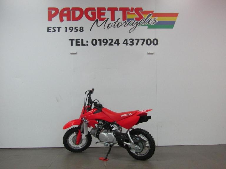 We present here for sale this 2025 Honda CRF50F. Honda’s longest-running off road model. With its key operated ignition, the CRF50F opens the door to endless thrills and excitement for aspiring young riders. Easy to start, easy to use, and always fun. Widely recognised as the original mini bike, the CRF50F is the choice of first-time riders the world over. Its inverted fork, 49cc engine, easy-shifting gearbox with automatic clutch and low seat height make the CRF50F a cinch to ride. Built strong and solid, with big bike styling and racy new graphics, this CRF will soon have the fun meters of the smallest riders in the family running red - Honda red. A young rider needs confidence from day one. So we’ve made the CRF50F easy for the junior rider to get along with. It’s easy to start, just turn a key and hit the button. It’s easy to ride with a dependable, strong 420 chain and it’s easy to stop with powerful front and rear drum brakes. The CRF50F wears a striking new CRF family paint and bold new graphics to celebrate Honda’s off-road racing pedigree. Twinned with a reliable air-cooled engine powered by a maintenance-free Capacitor Discharge ignition (CDI). There’s no better place to start than here. The bike is available for viewing and is well worth a look. Finance is available and is subject to status. Part Exchanges welcome. Nationwide delivery can be arranged from as little as £75. Usual Dealer facilities including a Large range of clothing, helmets & accessories. Call Padgett's Motorcycles today to ensure that you don't miss out; Suzuki Sales Centre 01924 609808, Honda Sales Centre 01924 437700 and Yamaha Sales Centre 01924 478491.