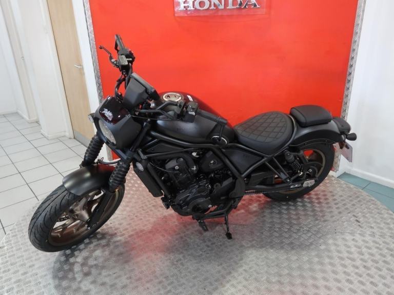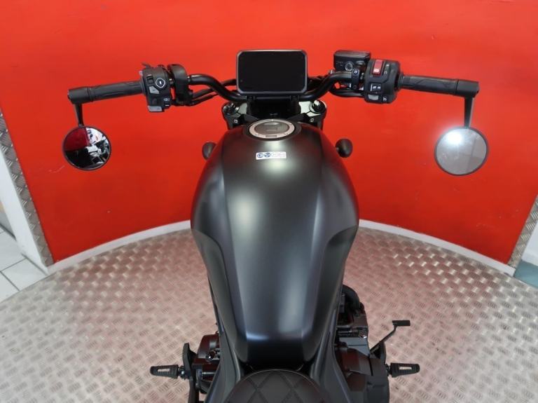 Honda' duo of big-bore Rebel cruisers become a trio with addition of the new 'street custom' CMX1100SE. All three share the well-proven 1,084cc twin-cylinder engine, now with bolstered low- and mid-range torque, as well as more power. The Dual Clutch Transmission (DCT) option receives low-speed running upgrades to increase usability. Other updates comprise a more ergonomic riding position and new five-inch TFT screen with Honda RoadSync smartphone connectivity and USB-C socket. The Special Edition is enhanced further with a colour matched front cowl, specially designed fork leg gaiters, sporty short front mudguard, diamond-stich seat and an anodised radiator cover. Available in two colour options : Flare Orange Metallic and Matt Ballistic Black Metallic. Nationwide delivery and low rate finance available (subject to status), order yours today!
