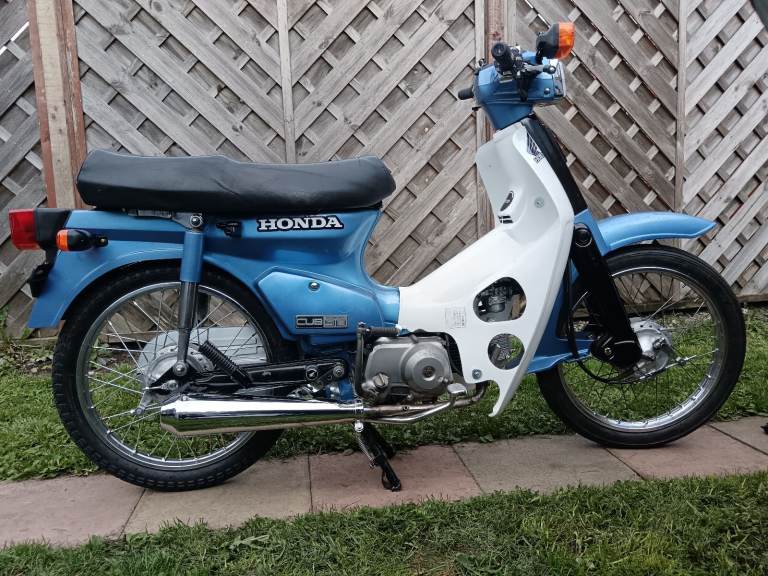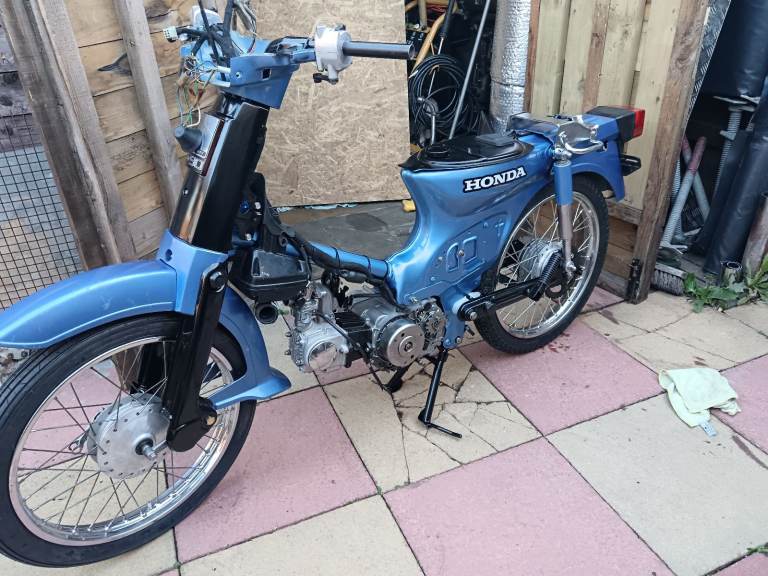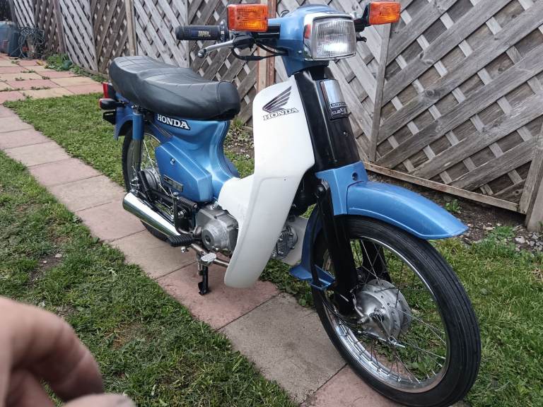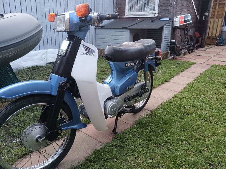 1998 R reg Honda c90 cub 90 19000 on clocks but fresh rebuild, a bike of my childhood come to me in a box last on the road 2021 and was stripped and boxed then I got it been a project in my spare time half hour here a hour there, most parts replaced every bearing and bush and seals replaced including engine overhaul with new top end not one rusty bolt all bolts washers replaced very clean new tyres and heavy duty tubes, respoked wheel new brakes shoes cable and bar new rear wheel rubbers new springs everywhere new battery new headset bearings plates and rubbers grips pegs, I think pics speak for it's self, not original rear indicators or silencer but look pretty close I have reg and V5 in my name will come with full mot any questions just ask