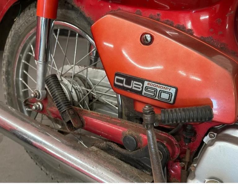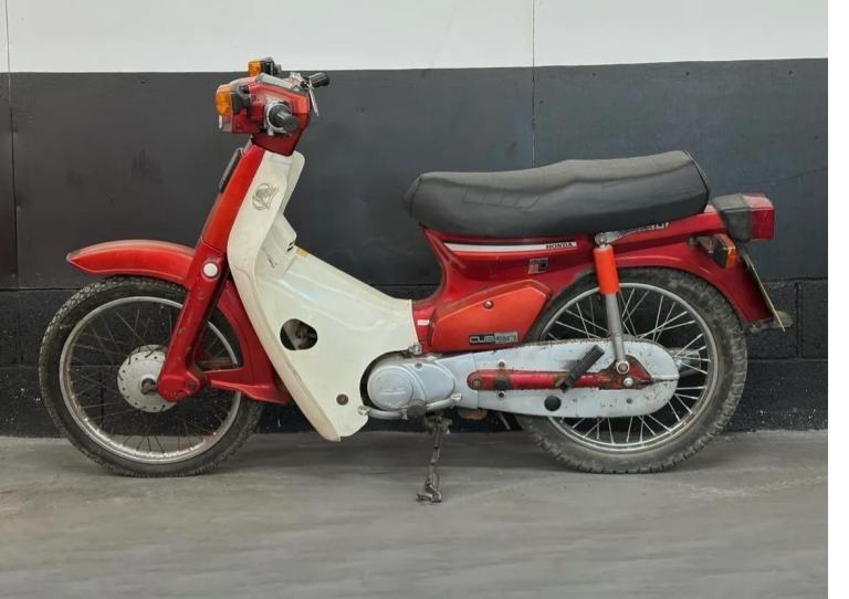 A very original example of Honda’s legendary step-through, finished in classic red. This 1990 Honda C90 has covered 53,769 miles and retains its authentic charm, with the seat in good condition and much of its originality intact.