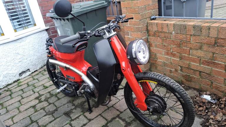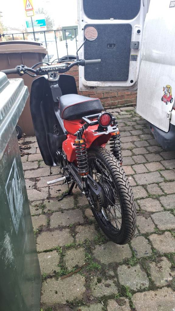 As you can see it is not standard it has many aftermarket parts, bought this as a little project but now don't have to time to ride it or the room to keep it.
