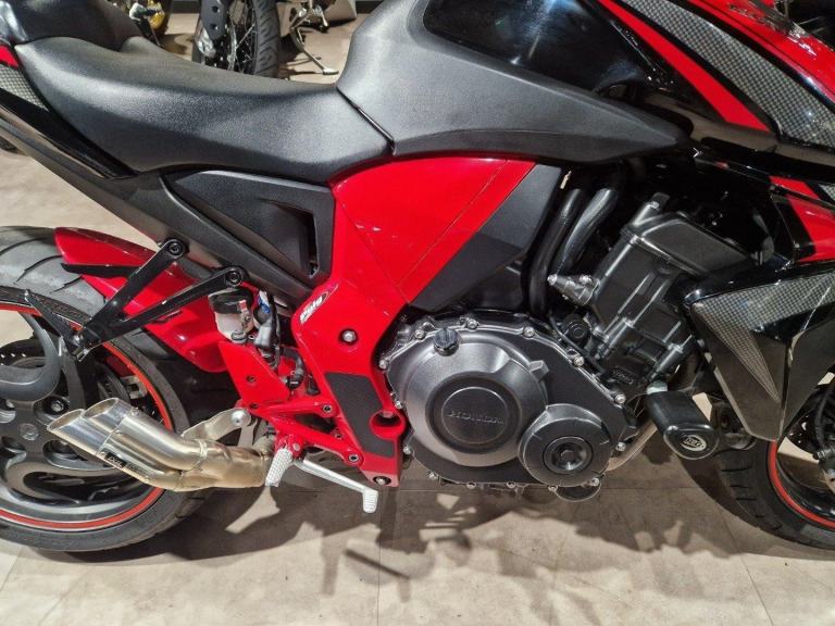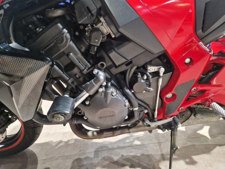 We have a lovely Honda CB1000R in red. Honda CB1000R is known for build quality and approachable nature, it's a comfortable and easy bike to manage, even in traffic. The engine provides a broad, accessible powerband that makes for enjoyable acceleration without needing excessive revs. Its upright riding position, comfortable seat, and ease of use in various conditions make it an excellent all-around naked bike for daily riding and commutes. This bike has been fitted with Short Clutch and Breake Leavers, Fly Screen, Front Fenda Extender, R and amp;G Engine Bungs, Taily Tidy, IxIL Exhaust Can. The bike will be fully checked over and will have a new MOT if needed.