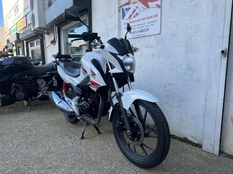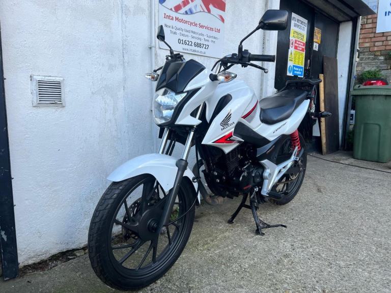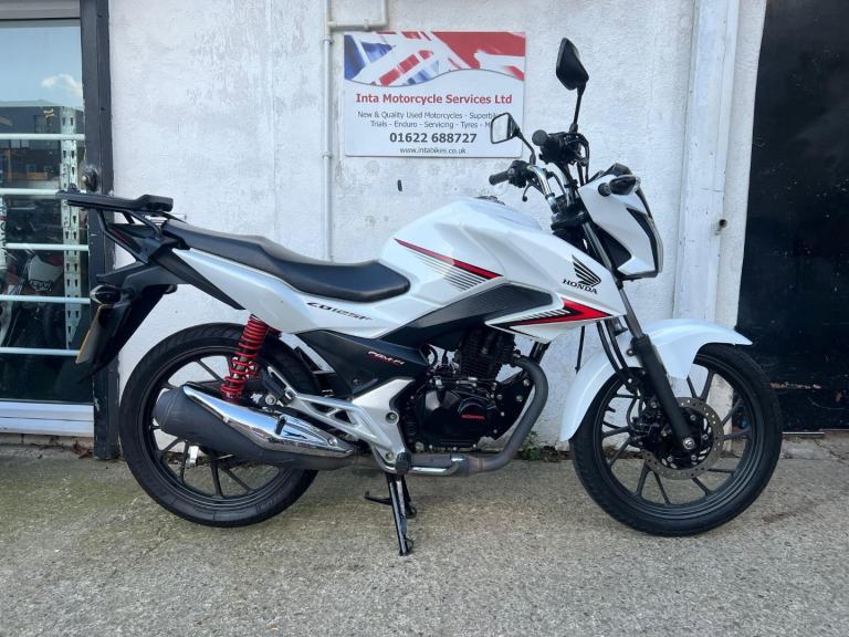 A Honda CB125F in really nice condition, low mileage, rack & topbox