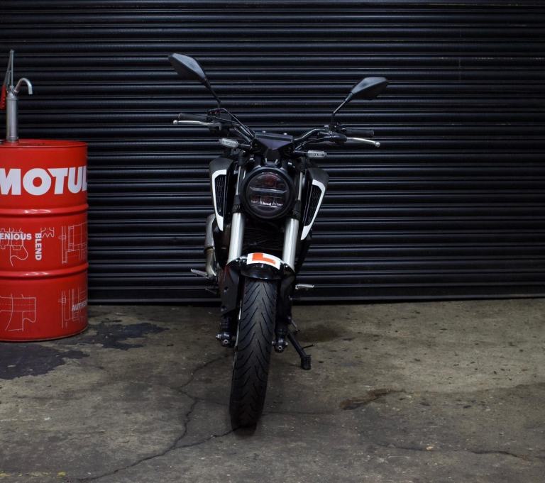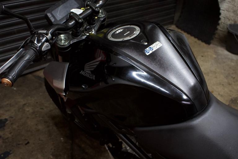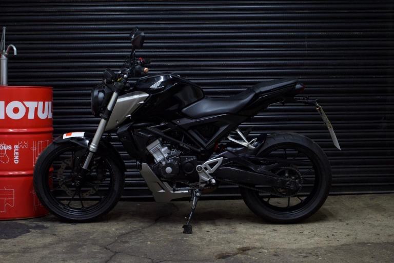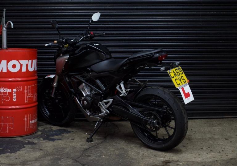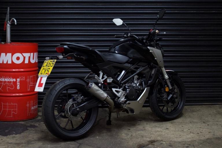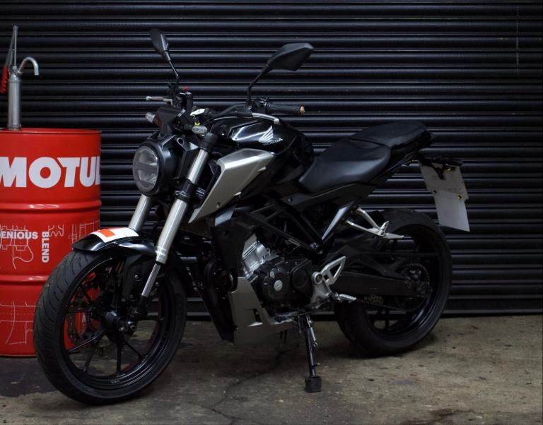Honda CB125R in black. EVERYTHING on the bike works as it should with no issues at all. Just had a brand new front tire, rear tire has plenty of life in them. Chain and sprockets in good condition and do not need to be changed anytime soon. Brakes in a safe and healthy state. Comes with logbook, MOT, 2 Keys and a scorpion exhaust system.