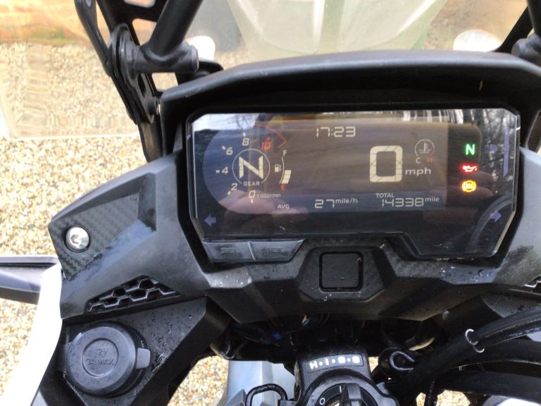 High standard spec includes lightweight clutch, LED lights all round, adjustable suspension front and rear, gear indicator, ABS, 19" front wheel, adjustable levers, hazard flashers, accessory socket, rear grab handles, Honda immobiliser, original toolkit and helmet holder.