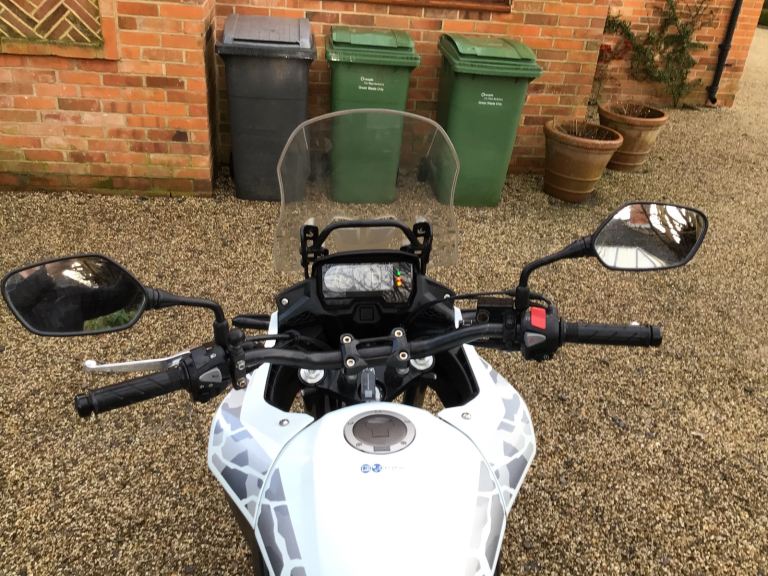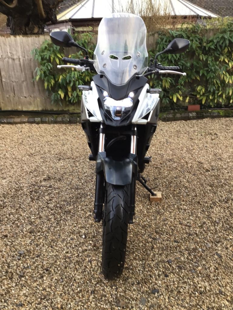 Super clean and reliable example of the best A2 compliant adventure/touring bike. Light weight and punchy engine make for a great ride whatever your experience. Cruises all day at 75+mph on the motorway, easy 200+ mile range, relatively low and wide comfy seat and excellent adjustable screen.