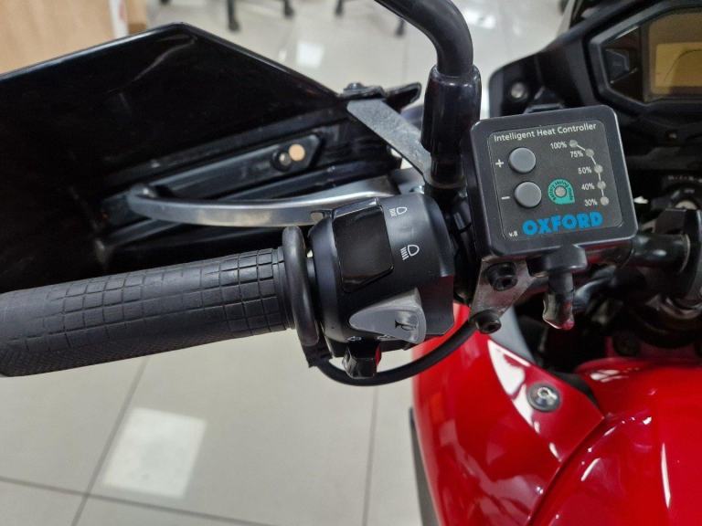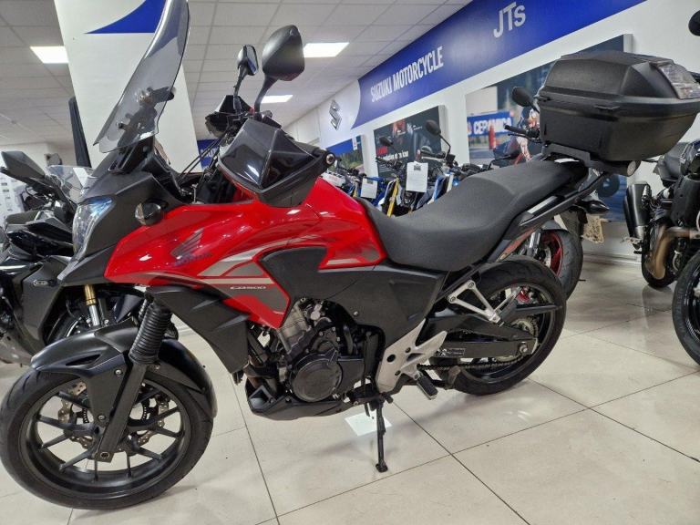 We have a lovely Honda CB500X, which is a well-balanced adventure motorcycle that offers both fun and reliability for beginners and experienced riders alike. The CB500X features a fuel-efficient 471cc parallel-twin engine that delivers a smooth power surge and can achieve an impressive 60-70 MPG average. With its slim design, flexible suspension, and versatile hardware, the CB500X is comfortable and capable on both on-road and off-road terrains, making it a great choice for urban commuting and touring. The bike comes with Oxford heated grips, Givi handguards, a tall screen, a Moto power USB charger, Datatag, Givi blade top box, fork gaiters, front mudguard extender, bar raisers, and an R and amp;G tail tidy. The bike will be fully checked over by our factory-trained mechanics.