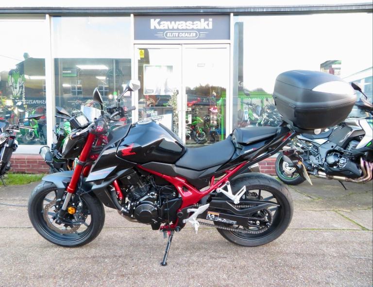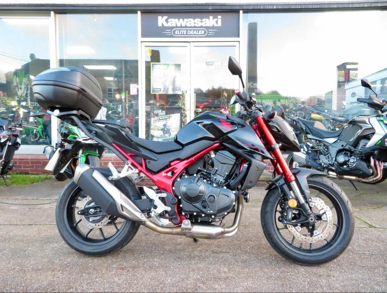 For sale here we present a stunning 2023 '73 Honda CB750 Hornet in black. The bike has covered 2,780 miles and had 1 owner from new. A very clean example fitted with a Givi Monolock top box, Honda tank pad, 'dual' usb port and rear paddock stand bobbins. A2 license compliant. Abs, LED lighting, colour TFT display, 90bhp, Showa front forks, engine brake control, traction control and 3 riding modes are standard on this model. Finance, part exchange and nationwide delivery are available. Secure this lovely CB750 Hornet today with a £99 deposit. If you would like any further information, please do not hesitate to contact our sales team.
