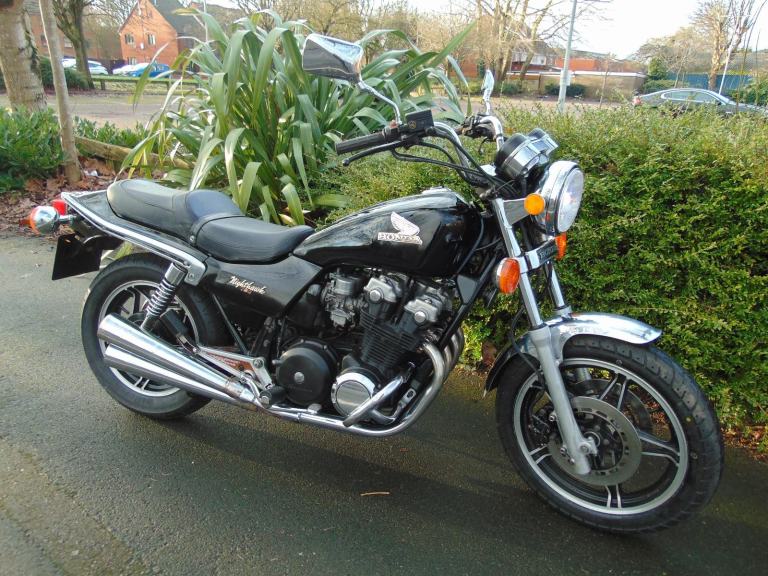 Honda CB750 Nighthawk an original US custom bike of the 1980,s a good runner and in good condition for its 44 years of age, comes with an MOT so its in good sound original condition unrestored condition, was reg in the UK in 1995 with full UK V5 reg docs etc, an ideal project ideal for the summer to improve and ride on a budget, its 4 cyl 70 bhp DOHC motor is smooth and responsive runs sweet and all the electrics wirh ok with a good charge rate sold as a running project to restore or just to cruise around on as is,HP checked clear ready to ride and enjoy. Can be viewed in our showroom at Allbikes & Allspares Ltd, Unit 11, 29 Clifton Street, Chapel Ash,Wolverhampton, West midlands, WV30QT please call us on 01902 312939 or emails to [Email address removed. Click Email button to contact us.]. UK delivery if required.