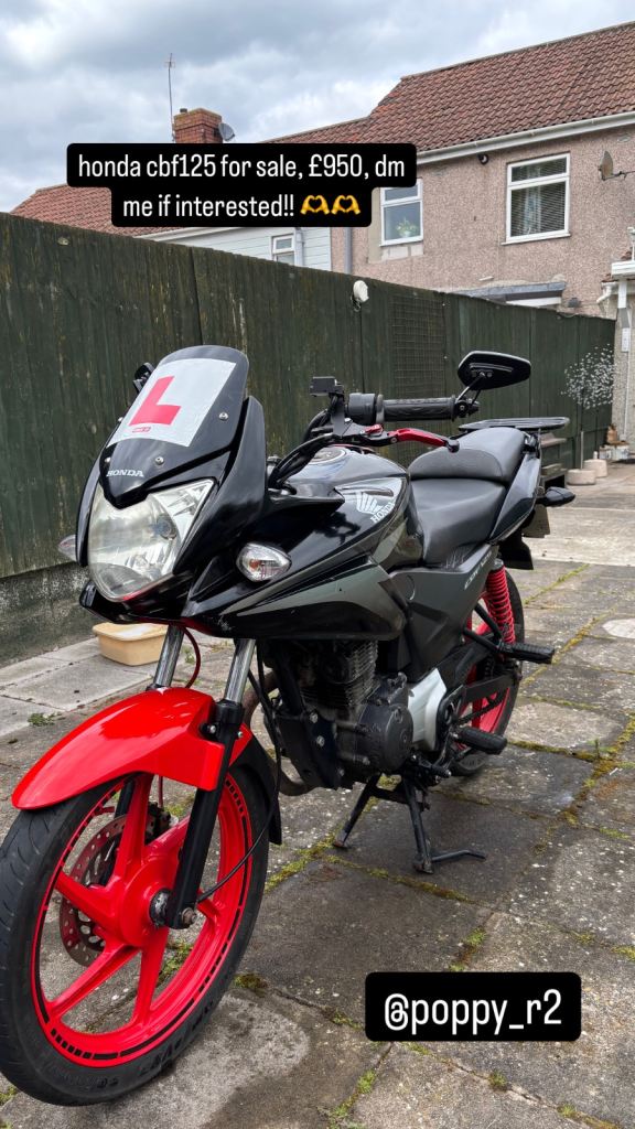 Really nifty little 125 - perfect for beginners, city commuters and in great time for summer. Has a few dings and dents (see pictured) from previous owners, though these are only aesthetic. Bike starts on the button and runs well. Open to offers!