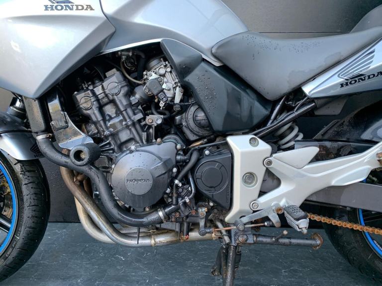 Here we have for sale a Honda CBF600 as a project bike in overall good condition. This bike runs on a jump pack, it does run slightly fluffy, so we would assume the carbs will need attention. As shown, there are a few marks on the tank. The electrics are functional bar the rear brake light. The tyres are ok. We have the V5 and service book for this bike, the MOT expired 12/07/2024.