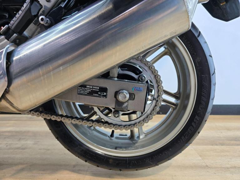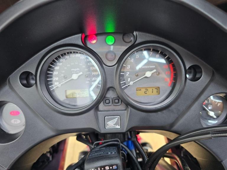 This particular CBF1000 comes exceptionally well-equipped, making it an ideal choice for serious touring. It features a full Honda luggage system, providing ample storage for multi-day trips. For enhanced security, it is equipped with Honda's HISS (Honda Ignition Security System). Practicality is further boosted by a centre stand, which makes chain maintenance and parking a breeze. The addition of crash bungs offers valuable protection in the event of a low-speed drop. A Garmin satnav mount is ready to accept a navigation unit, while Honda's sophisticated Combined ABS system provides linked braking and anti-lock safety for confident stopping in various conditions.
