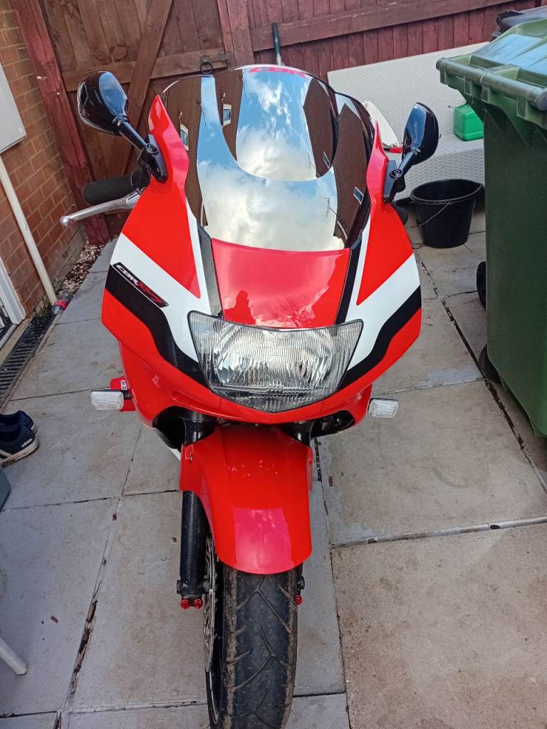 Mot untill July had new cam chain and cam adjusters cogs replaced new iridium plugs and head gasket coils replace cdi replaced new chain and sprocket front and back new upgraded indicators with indicators built in mirrors fully working order replaced sump with new gaskets replace exhaust with used one as was blowing new throttle cable New clutch cable New clutch break levers new front master cylinder and front brake calipers new brake shoes didn't replace discs as was like new rear disc replace with new pad rear calipers was fine fully working front tyre like new was replaced last year new steering bearing bottom and top whilst it was stripped new battery new clutch basket clutch plates she runs brilliant start s in cold morning with choke ready to ride away for summer which soon be here will take offer s but no stupid ones
