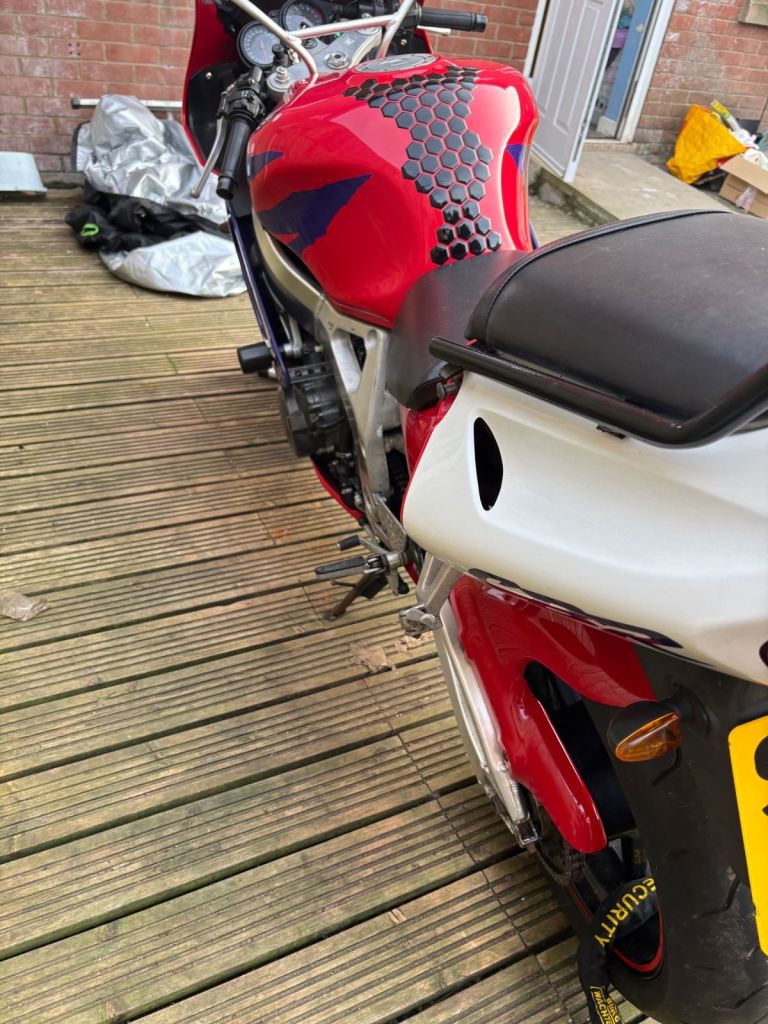 Brilliant example of the 1998 cbr 900. RR. Just had carbs all ultrasonically cleaned and setup . Akrapovic exhaust system sounds great brilliant body work runs and rides as it should fast bike keeps up with the best of them