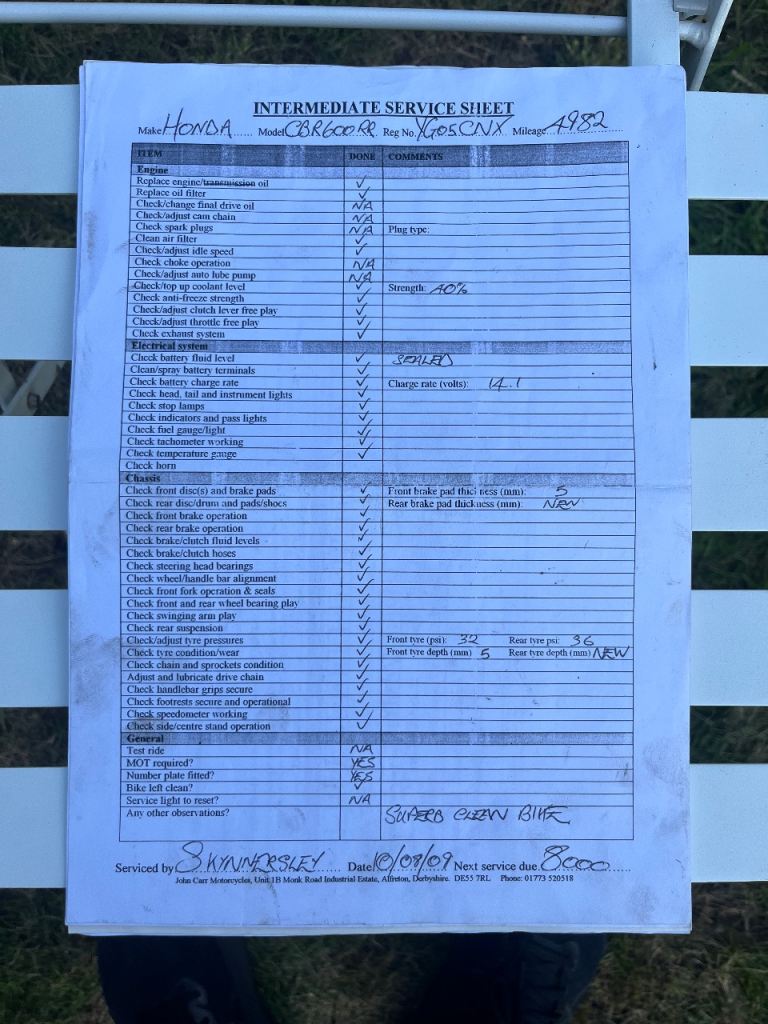 I’m selling my Honda CBR 600RR. It’s had a new MOT which included a new battery and new foot peg / peg baseplate.