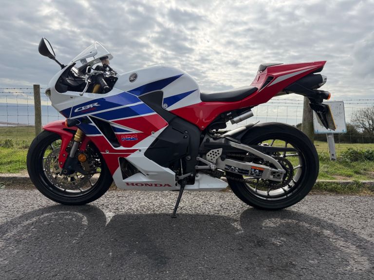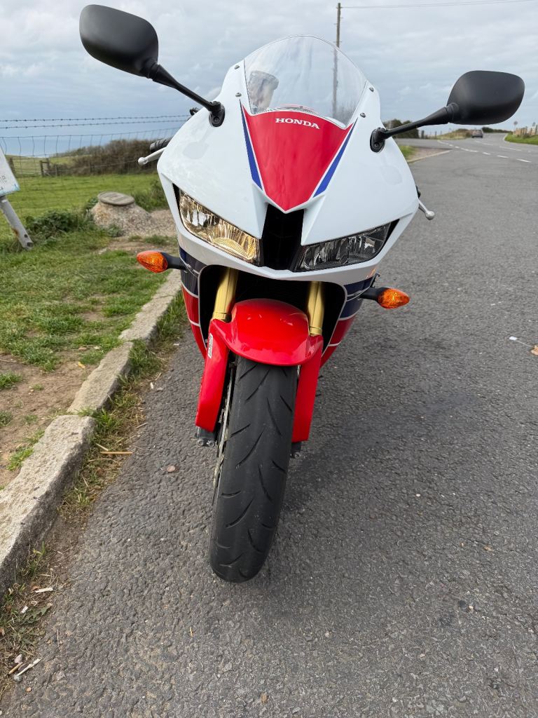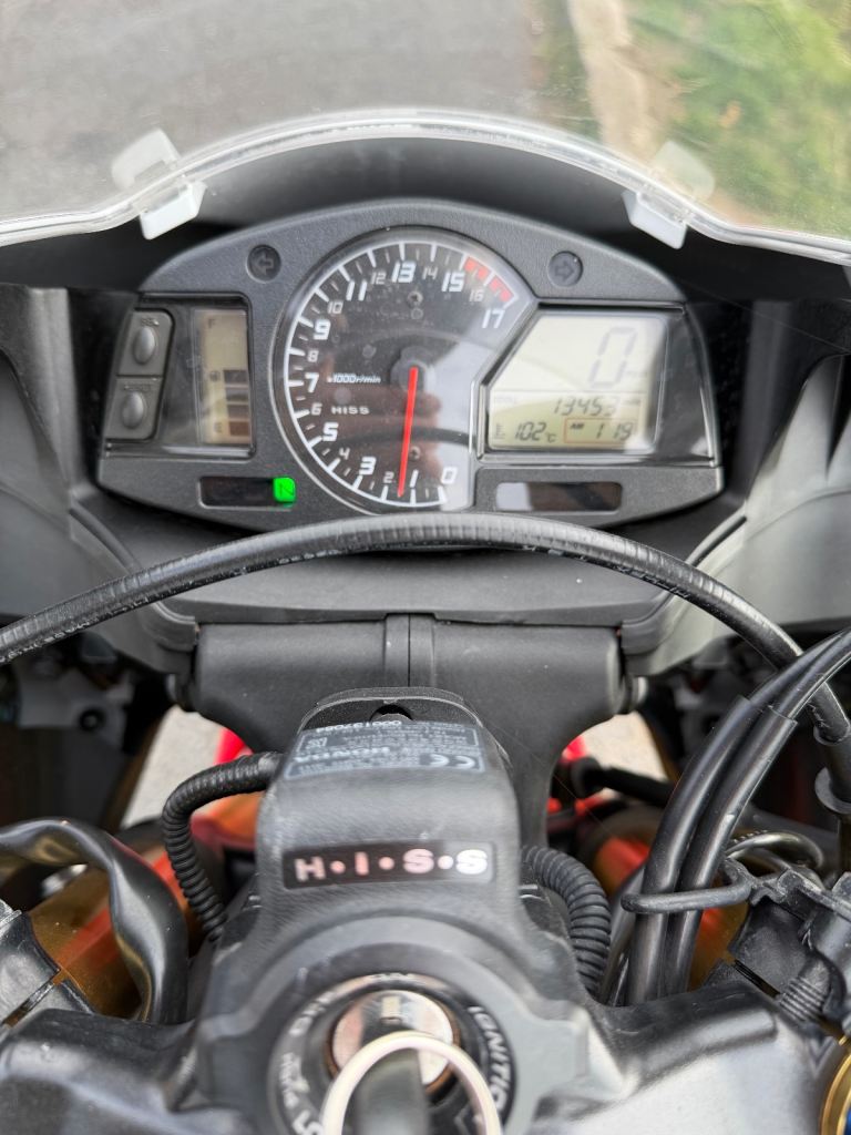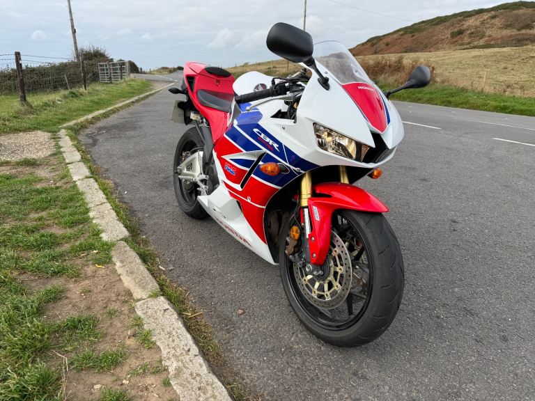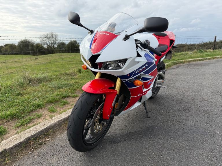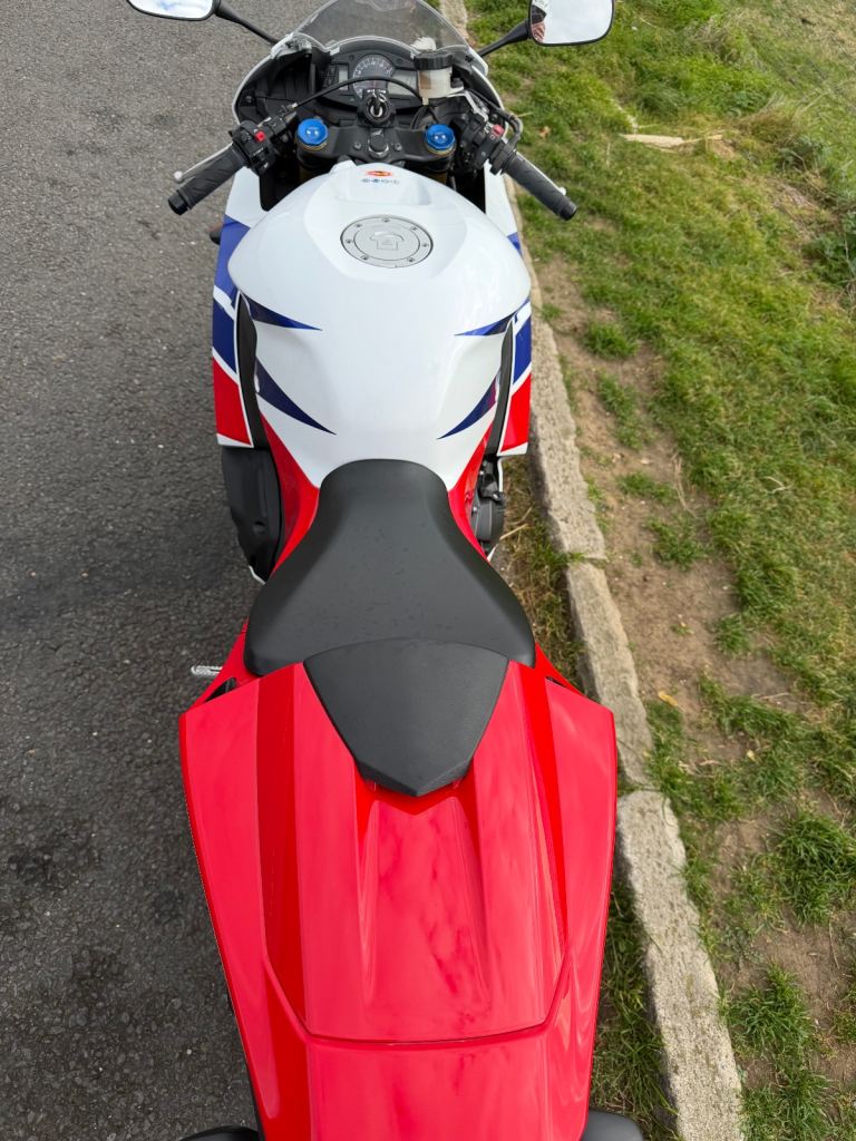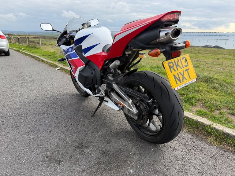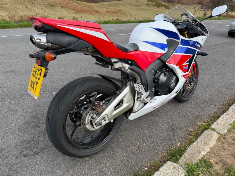 Honda cbr600rr-13 with 13455miles on the clock. the bike has a clean MOT which expires 16/6/26. This is an ex Honda UK bike, I have all service history from my ownership. The bike is in good condition for its age and has been very reliable, the only defect is a missing paddock stand bobbin mount and graze on the chain side of the swing arm above the rear axle (in picture 2). The bike includes the original pillion seat and footrests and can include an ABBA maintenance stand which doesn't require bobbin mounts. reason for sale is that the bike barely gets used.