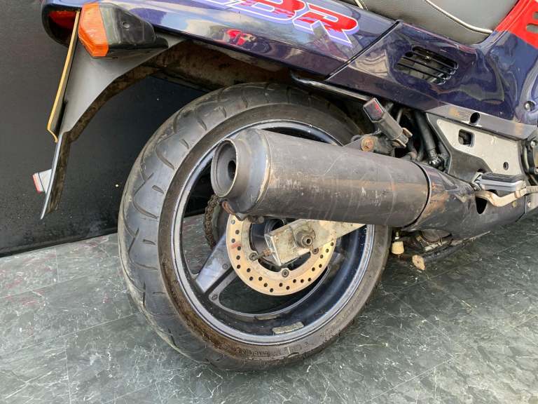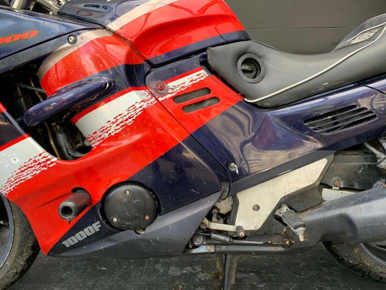 Here we have for sale a Honda CBR1000F as a project bike in overall not bad condition. We have had this bike running on a jump pack and a spray of easy start, the carbs will need going through. As shown, it is tatty in areas with panel damage , it has been repainted. The tyres are in usable condition. The brake light is working but no other electrics function. We have the V5 for this bike. The MOT expired 10.06.2022.
