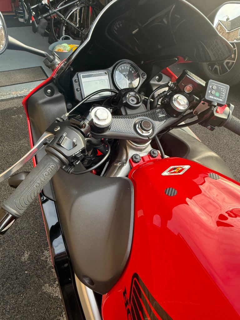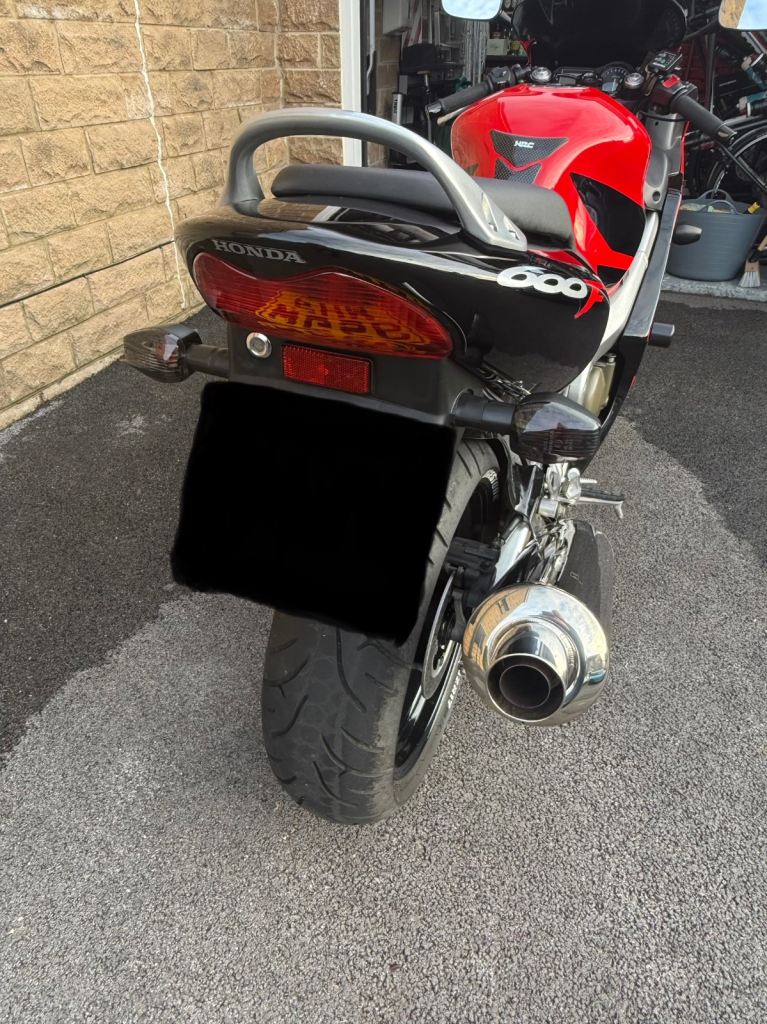 CBR600F6i in black & red, immaculate condition. Bridgestone Battlax BT023 tyres fitted. Oxford heated grips, crash protectors, rear hugger and front mudguard carbon extender fitted. Smoked double bubble screen and smoked indicator lenses. Delkevic stainless steel front downpipes fitted Oct 2025. Comes with service history and MOT until 17th Nov 2026.