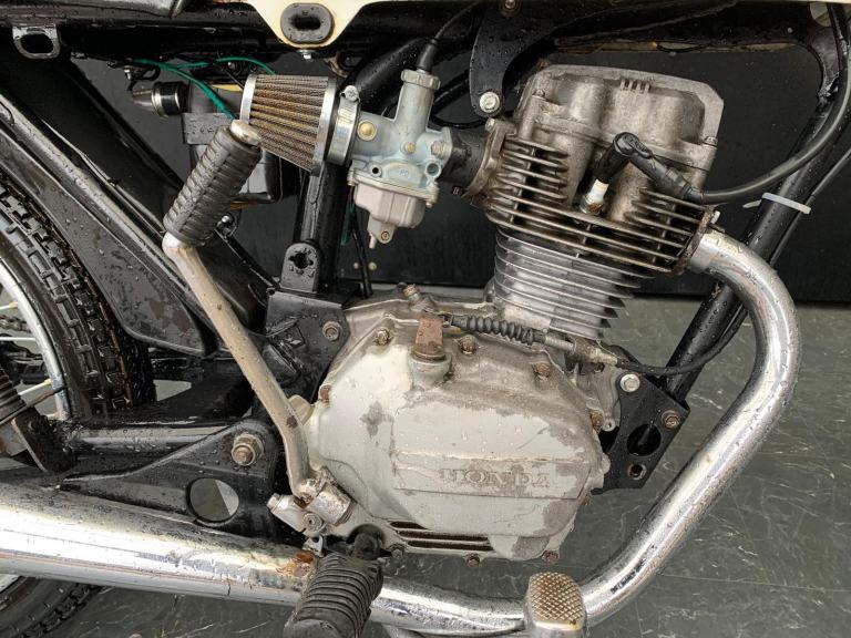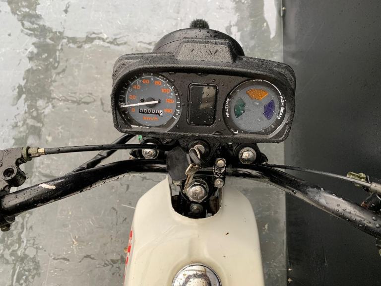 Here we have for sale a Honda CG 125 as a project bike in overall not bad condition. We have not had this bike running, it will turn over on kick start, there is no spark plug fitted, it does feel as if it has low compression. We have a bag of parts for this bike, as shown in the pictures. Both tyres are good, albeit aged. The electrics have not been tested, this bike has had a clock change, the clocks now say '0000', the last MOT states it had done 29,820 miles. The MOT expired 08/08/2016. We have the V5 for this bike.