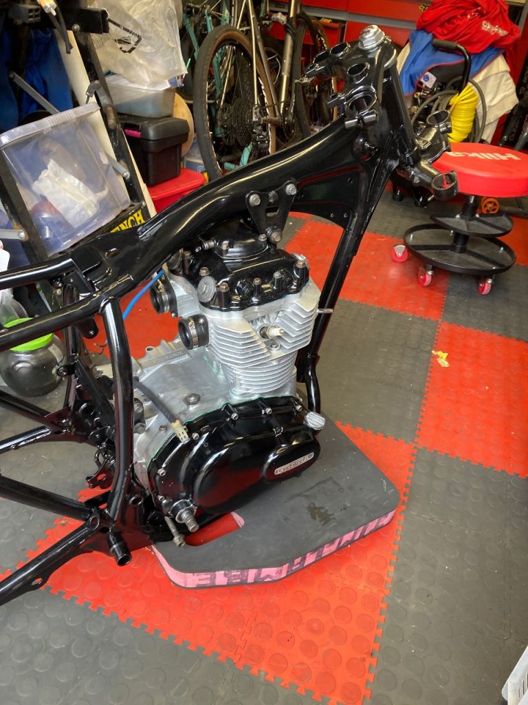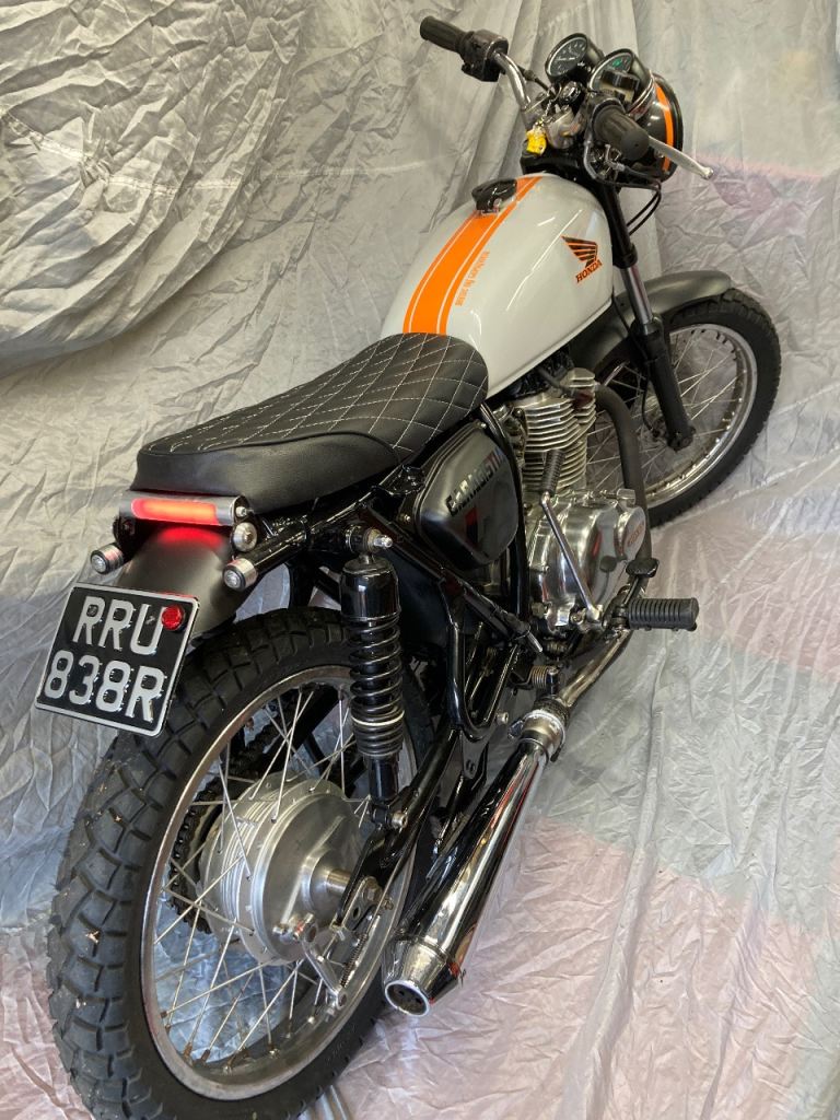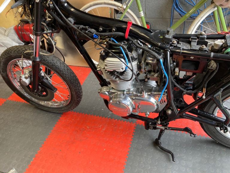 Tax, mot exempt 2 previous owners 1 one 40+ years , complete nut and bolt rebuild huge amount of new parts, powder coated frame engine rebuild new pistons, liners etc to much to list, and far to much spent on it.Haynes manual and spares include Starts and runs carbs need setting up, great looking bike for Bike nights. selling due to house sale and space