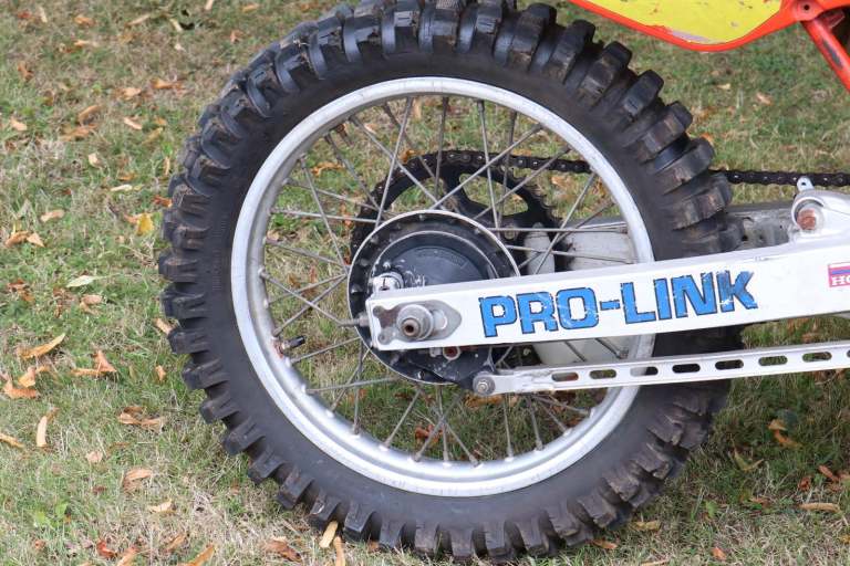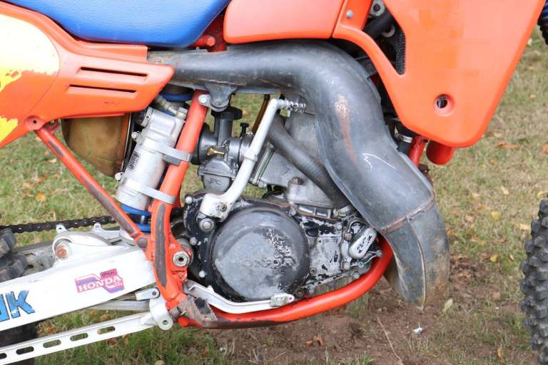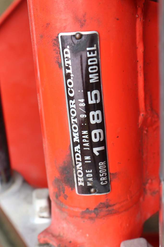 Fresh in from Georgia, USA, a 1985 Honda CR500. First year of the water cooled engine. Original engine and frame combination, all original and original paintwork in factory Flash Red. Runs and rides, even though front brake works! Looks like it's had a repair in front of the gearbox sprocket. Be quick it's sensibly priced and it's not going to be here long!