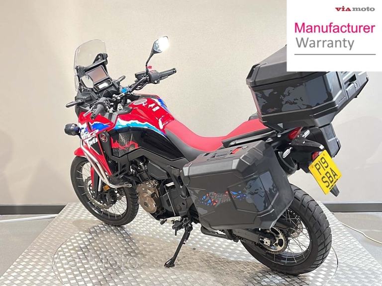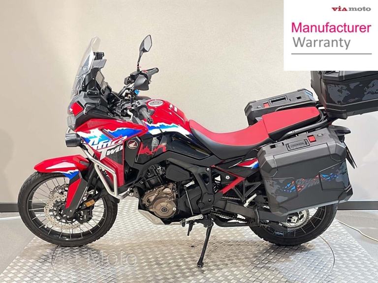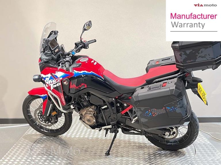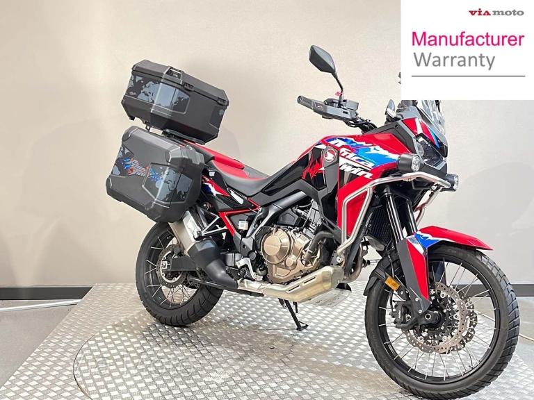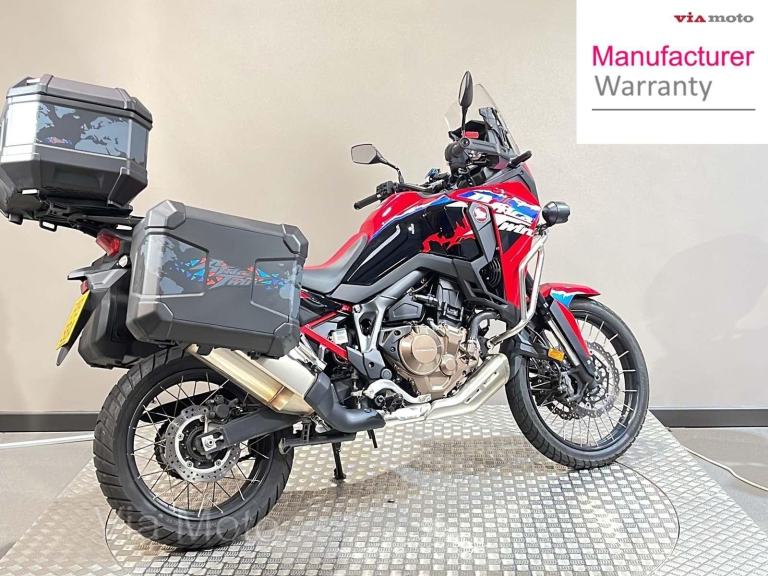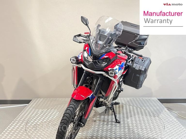 This Honda CRF 1100 Africa Twin A3 is a premium adventure motorcycle with just 1,759 miles on the clock and a powerful 1084cc engine, offering an exceptional blend of comfort, capability, and performance. Priced at £13,999.00, it comes with 5.5 years of warranty remaining for added peace of mind. Equipped with Apple CarPlay, cruise control, and electronic suspension, it delivers advanced technology for long-distance touring. Engine bars and LED spot lamps enhance safety and visibility, while full Honda luggage provides ample storage for your journeys. Heated grips ensure comfort in all weather conditions, making this Africa Twin ready for any adventure you have in mind. Finance and nationwide delivery available on request.