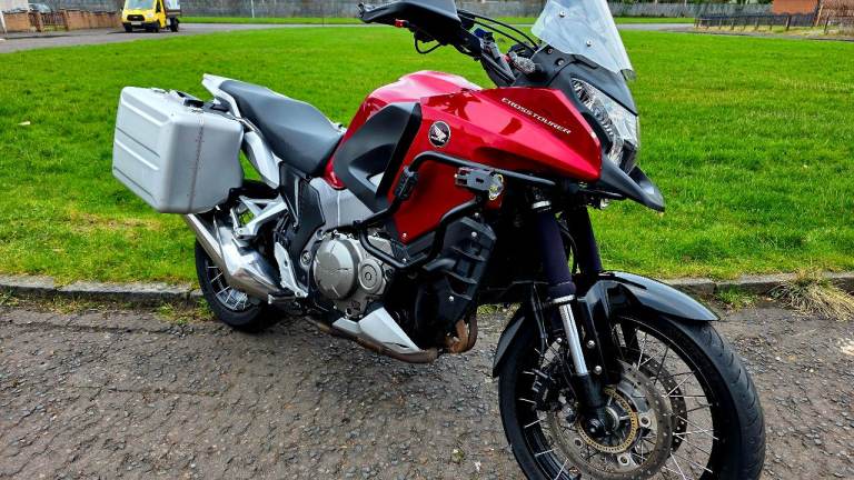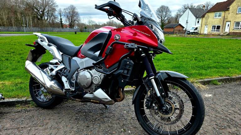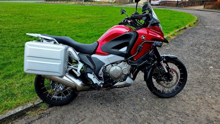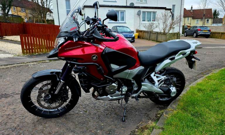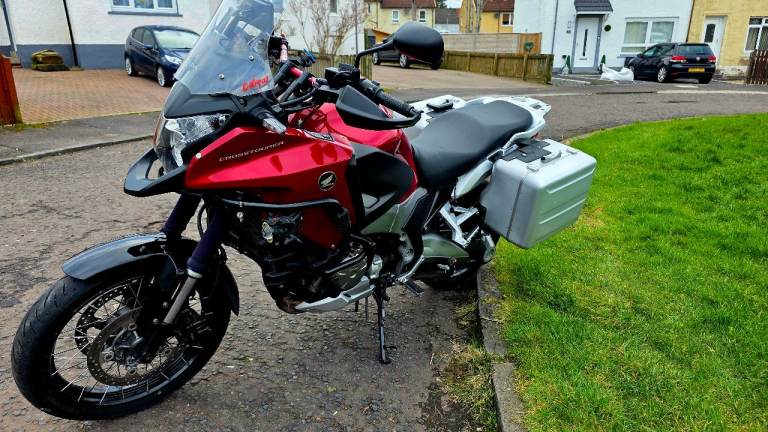 Honda VFR1200X Crosstourer 2012 – £3,700 – Someone Buy This Before I Change My Mind. 50,000 miles (which for these Honda V4 engines is basically just run in). If you know these bikes you’ll know they regularly go well past 100,000 miles when looked after. MOT until end September and just serviced so it’s ready to go. This bike has done the NC500 twice last year without a single issue and never missed a beat. It’s the sort of bike you could point towards Europe tomorrow and it would happily eat the miles all day. Regular oil changes and proper maintenance its whole life. Extras include Oxford heated grips (because Scotland), red fat bars, crash bars, headlight guard, VFR radiator guard, side panniers, top box, Quad Lock mount, Android Auto unit and USB charger. It’s a seriously comfortable mile muncher with loads of power and Honda reliability. Excellent condition for the year and mileage and genuinely well looked after. Only selling because I’ve upgraded to a Triumph Explorer XRX that’s on its way, otherwise I’d happily keep it. £3,700 which is cheap for what this bike is. No swaps, no silly offers and no “mate will you take £1500 and a PlayStation”. Come see it, hear it, ride it and you’ll realise why these bikes are so underrated.