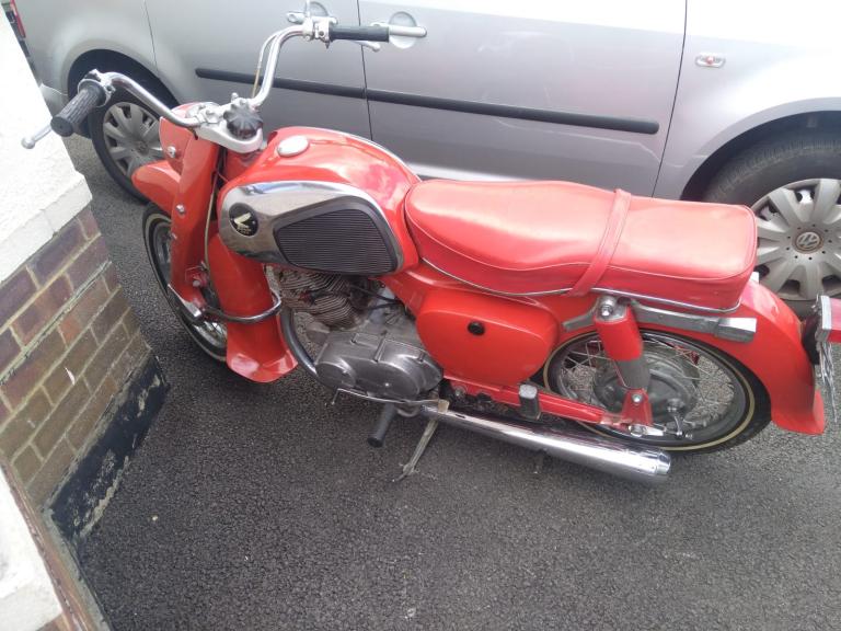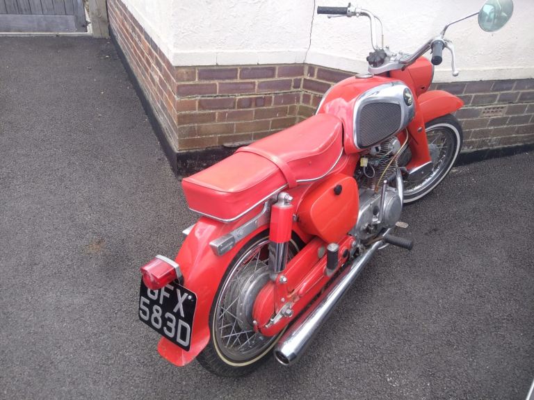 Slowly recommissioned by a local motorcycle shop over the last couple of years with new clutch, fuel lines, carb jets and various other bits I was enthusiastically told about but have forgotten since. Generally had it prepared for the road and used occasionally this summer. I am absolutely no expert in any form of classic motorcycle particularly this one but happy to try and answer any questions. Tax and MOT exempt, runs and rides as well as you could expect for something that is nearly 60. In generally nice condition, could do with a paint touch up in places and bit of winter tinkering but perfectly rideable as is.